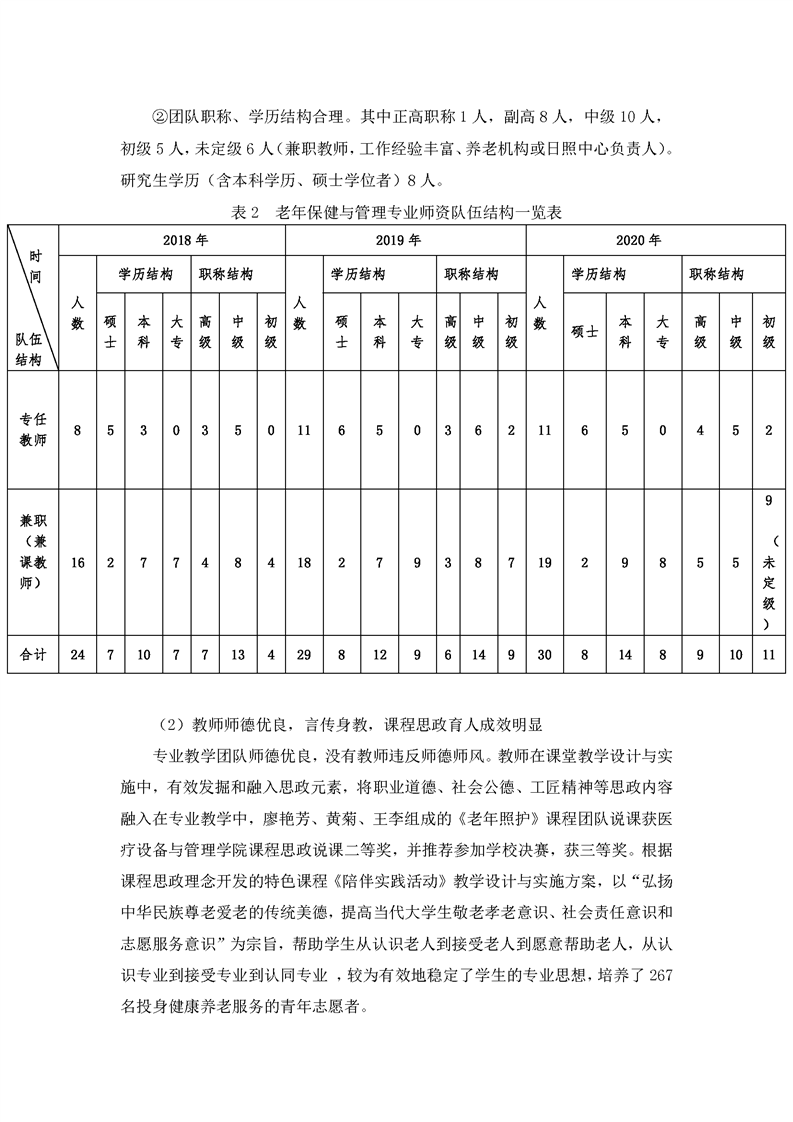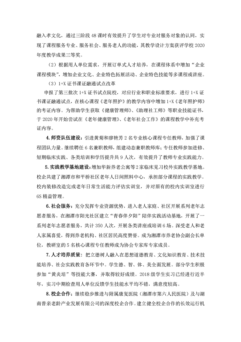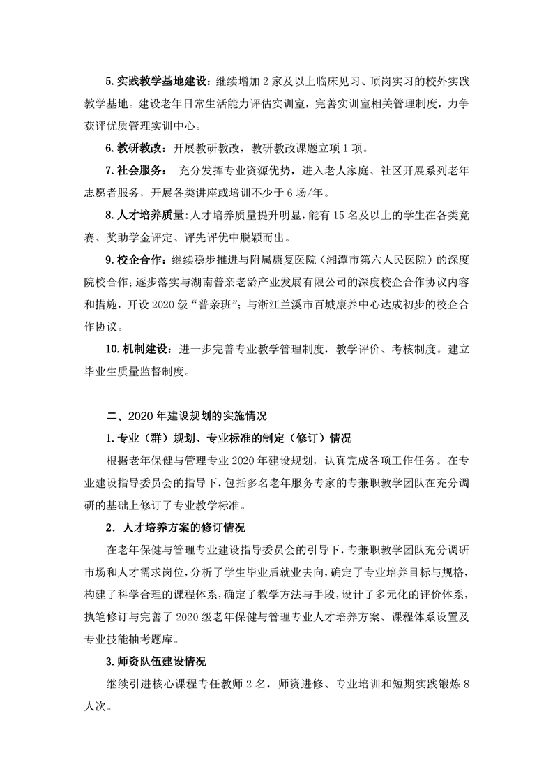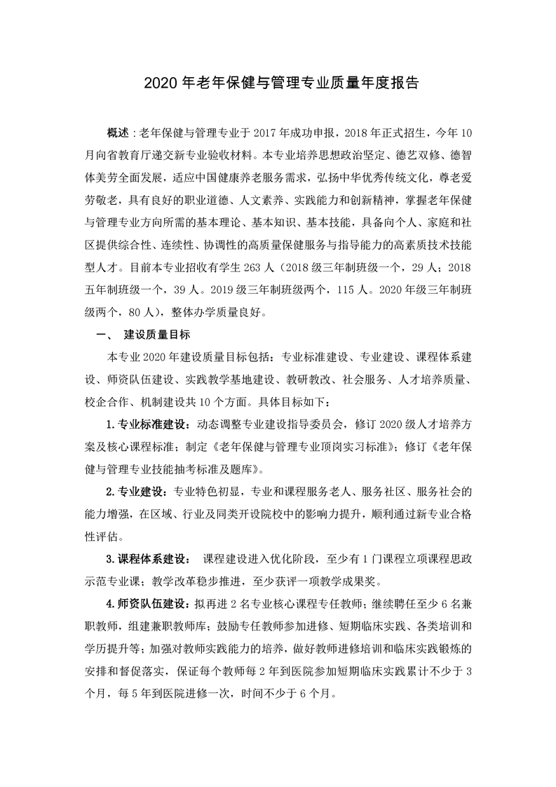 2.2.4.1 2020年老年保健与管理专业质量年度报告