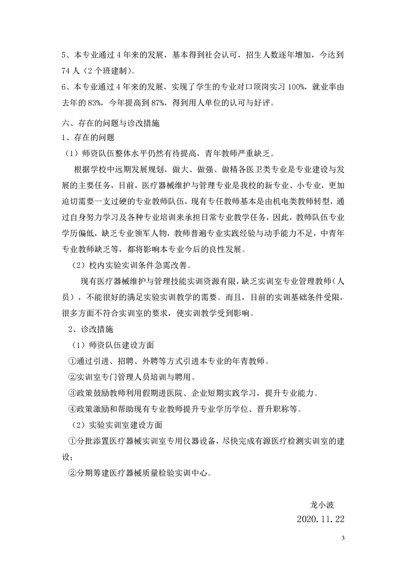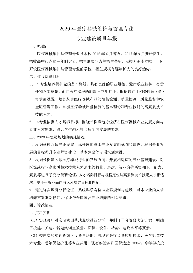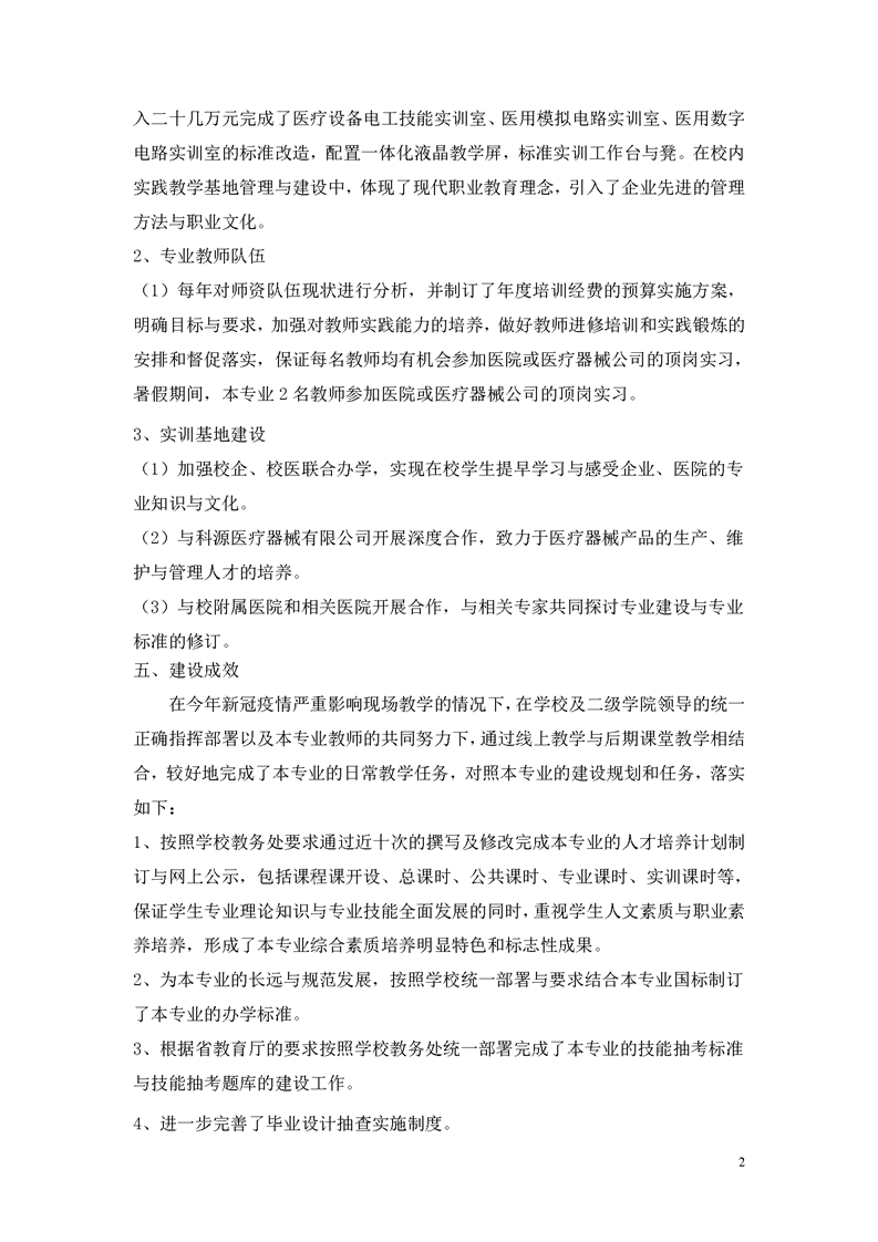 2.2.4.1 2020年医疗器维护与管理专业建设质量年报