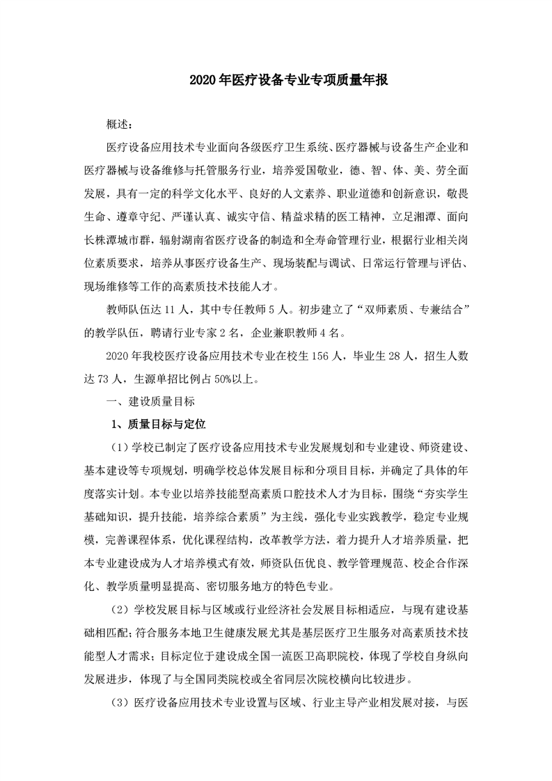 2.2.4.1 2020年医疗器维护与管理专业建设质量年报