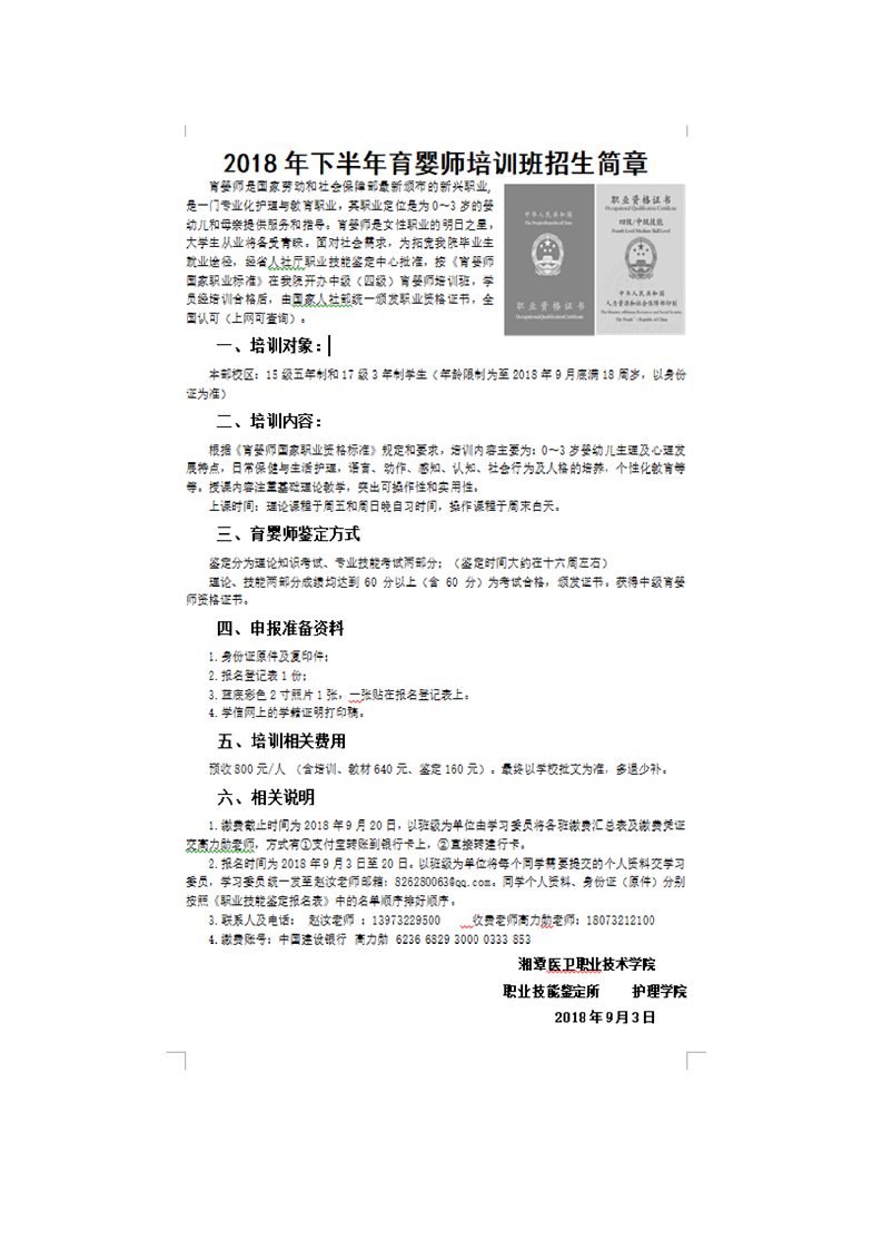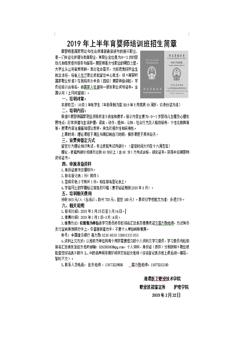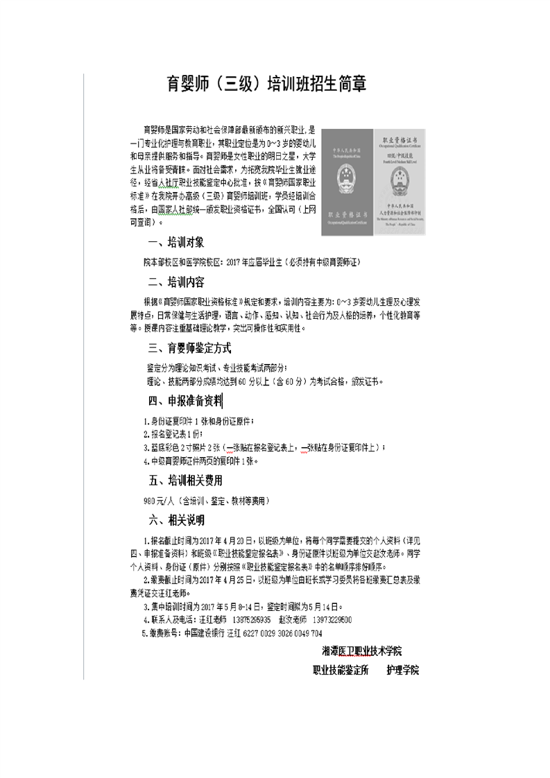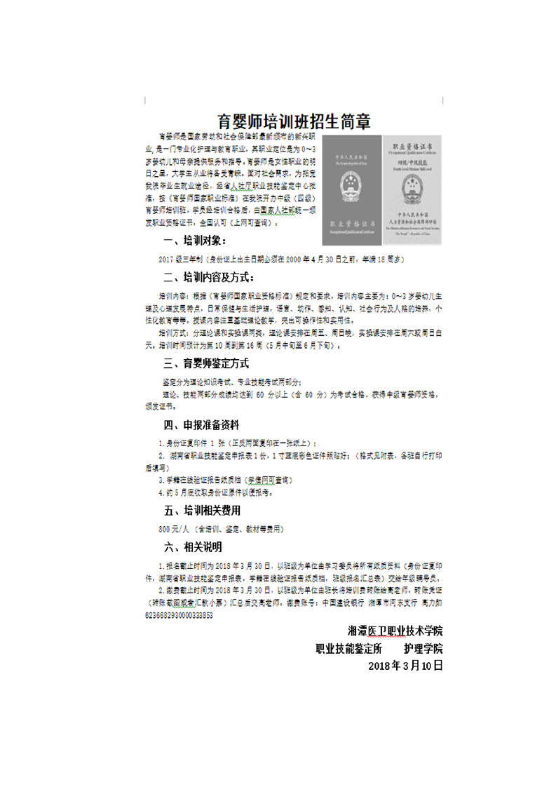 2.3.3.1湘潭市鉴(湘潭医卫职院)育婴师三级第8批常规鉴定考务方案