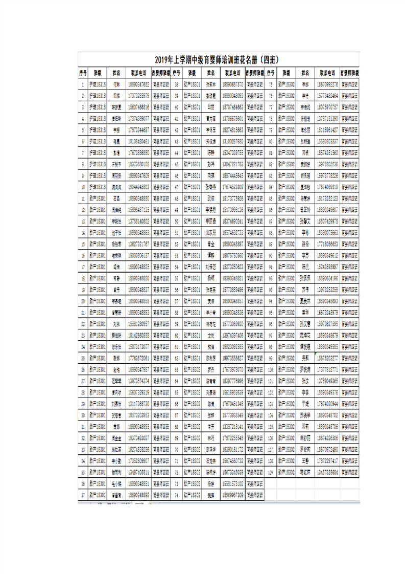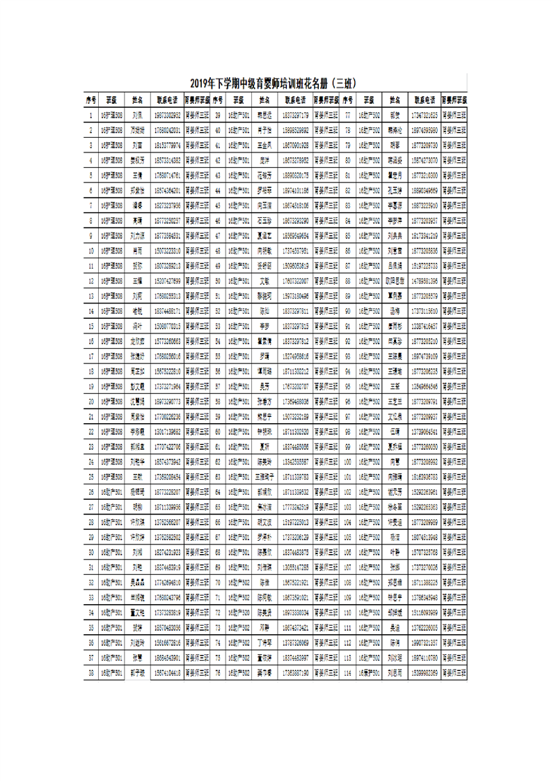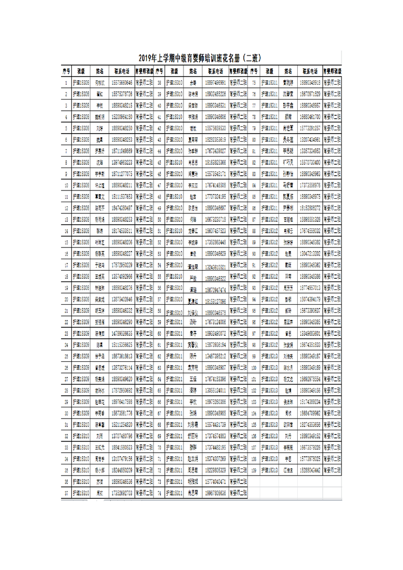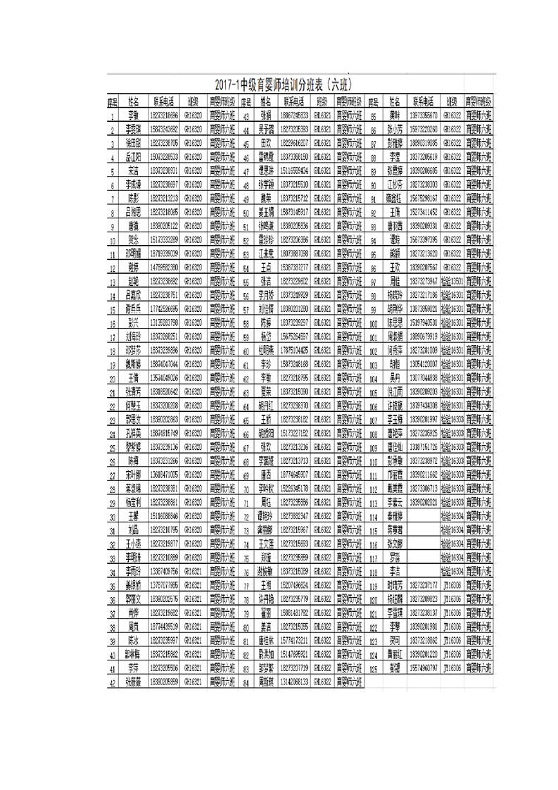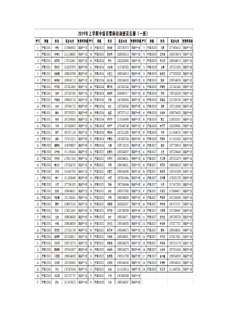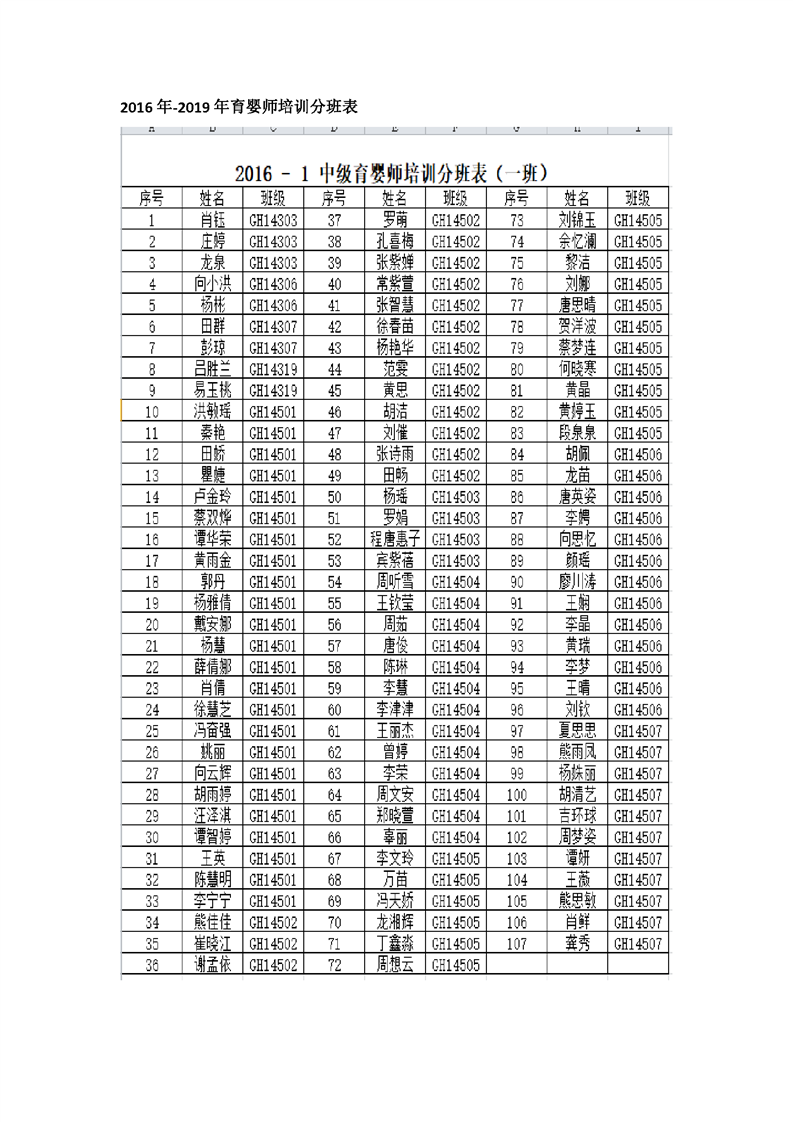 2.3.3.3 2016年-2019年育婴师培训分班表