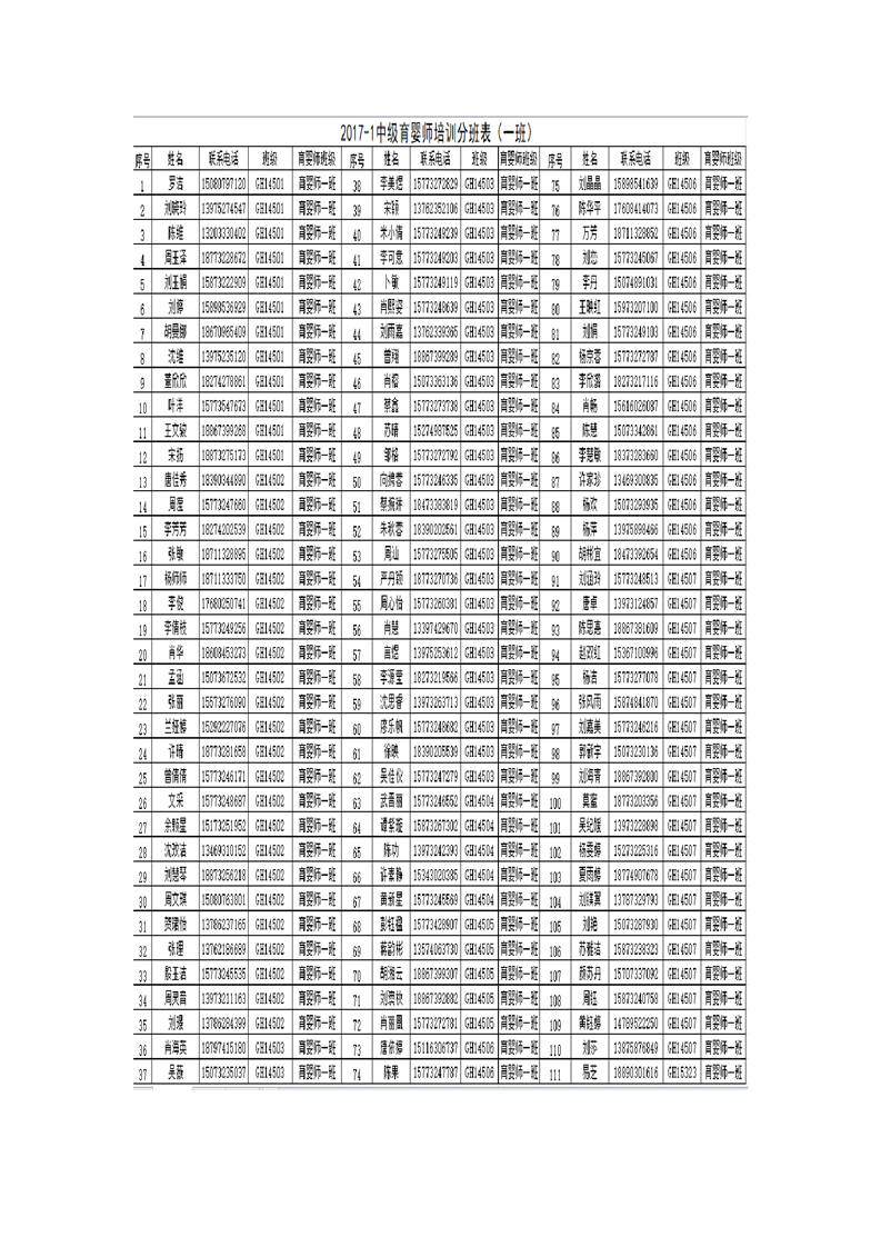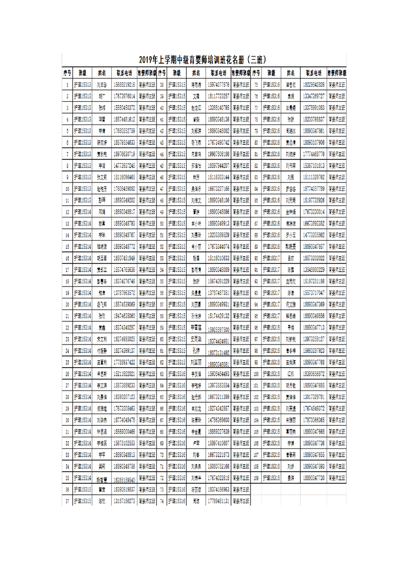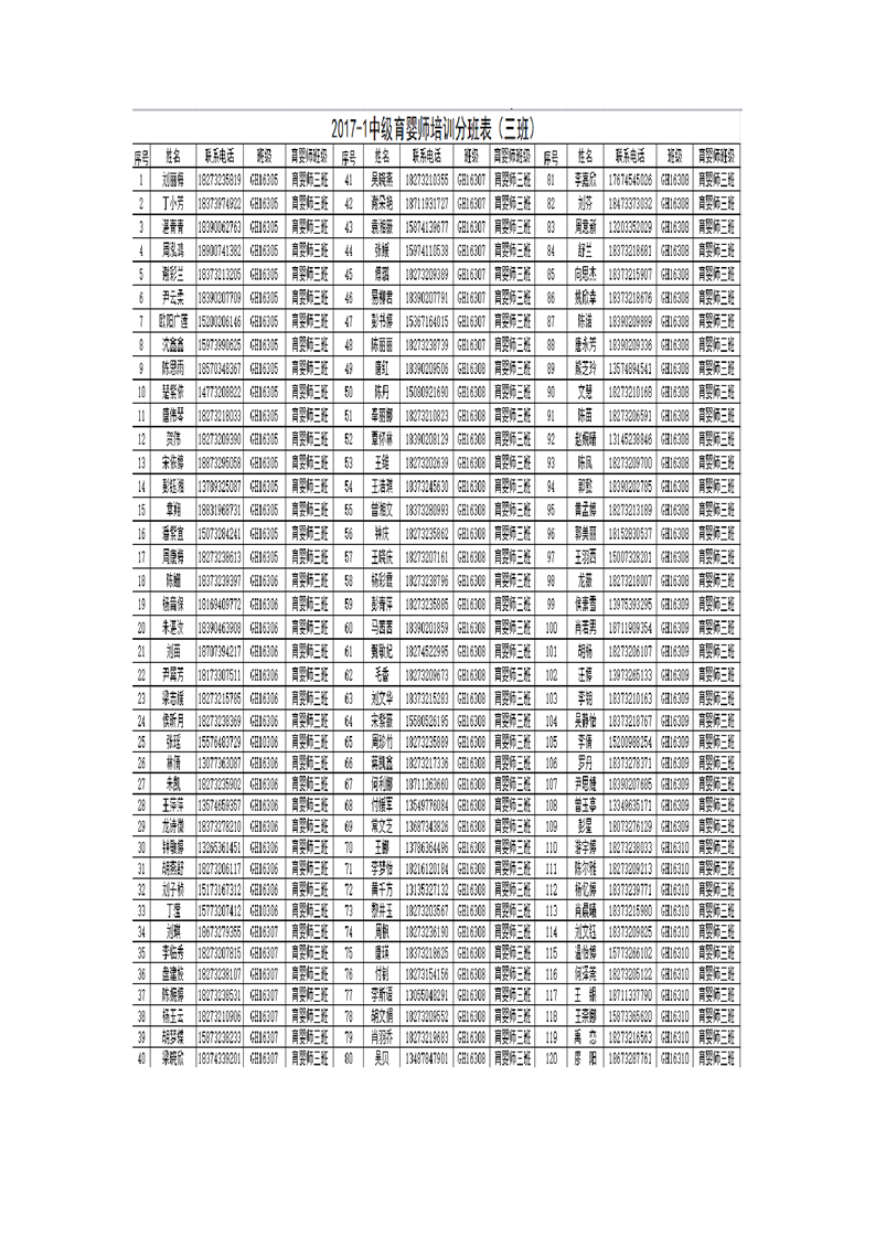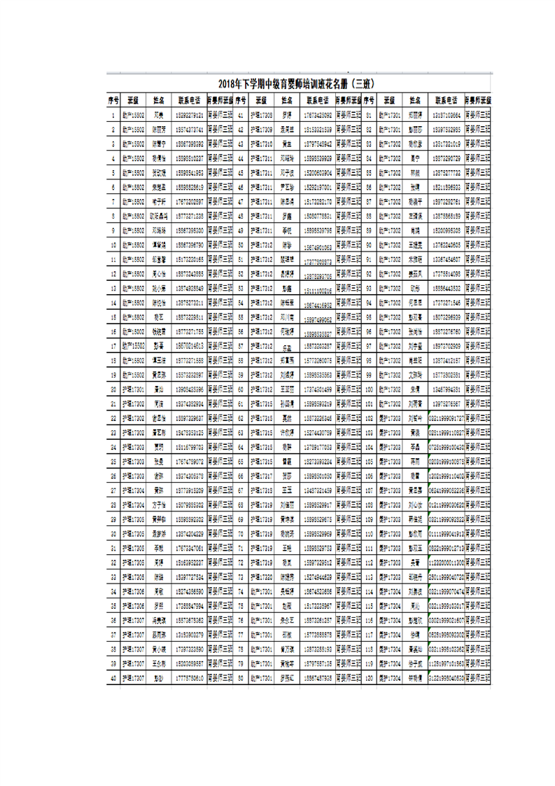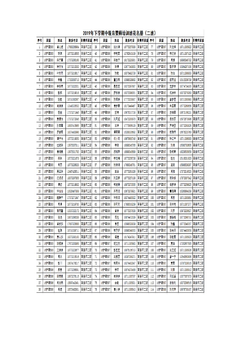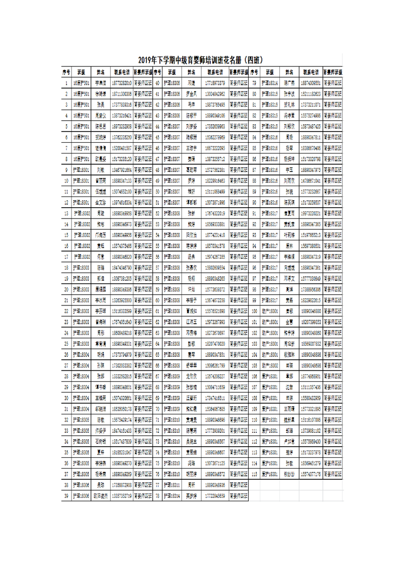 2.3.3.3 2016年-2019年育婴师培训分班表
