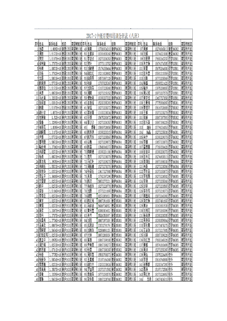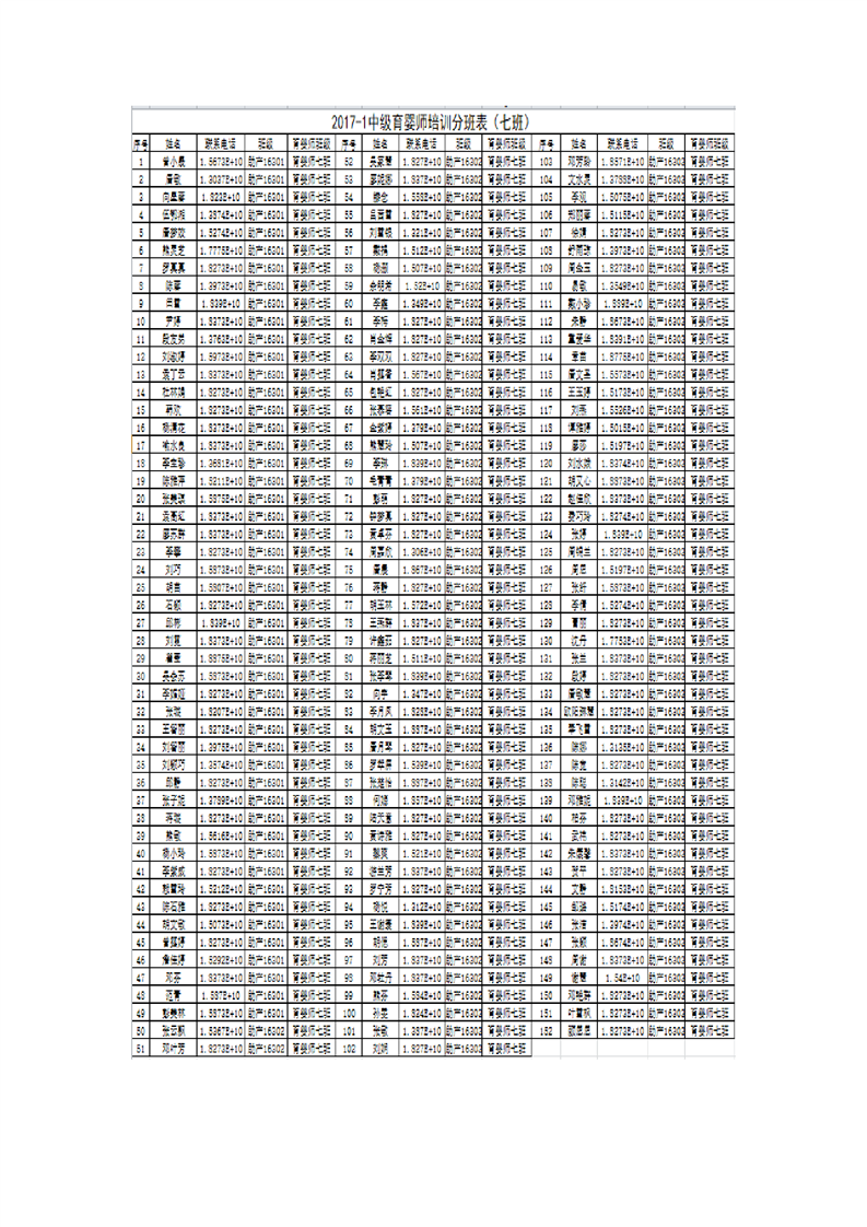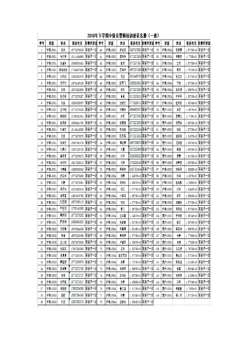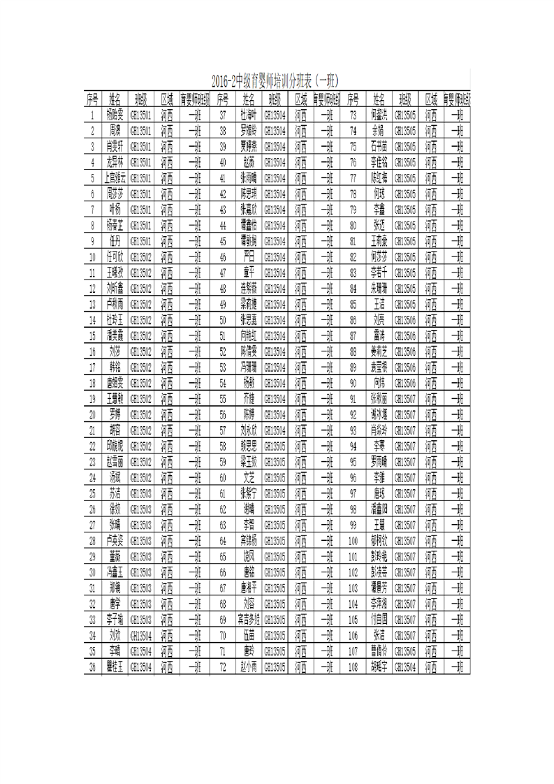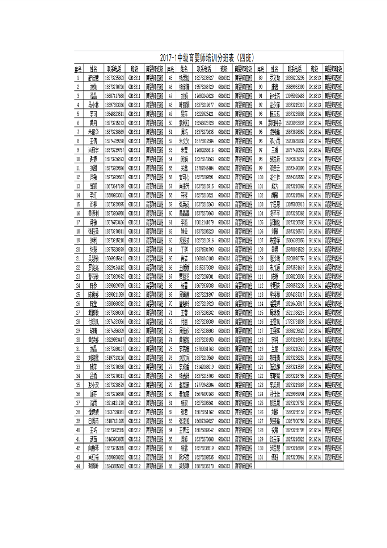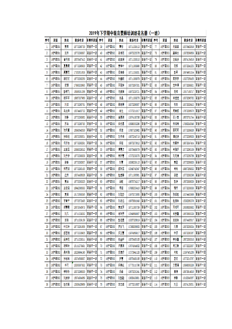 2.3.3.3 2016年-2019年育婴师培训分班表