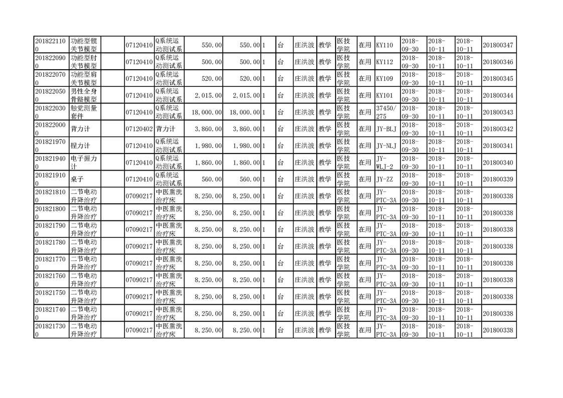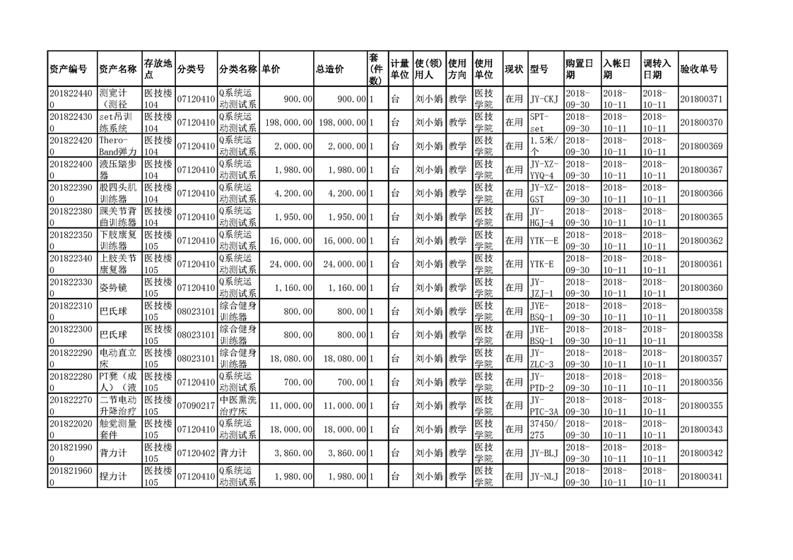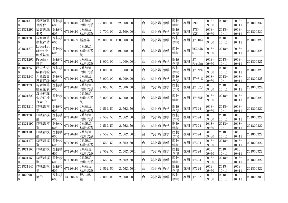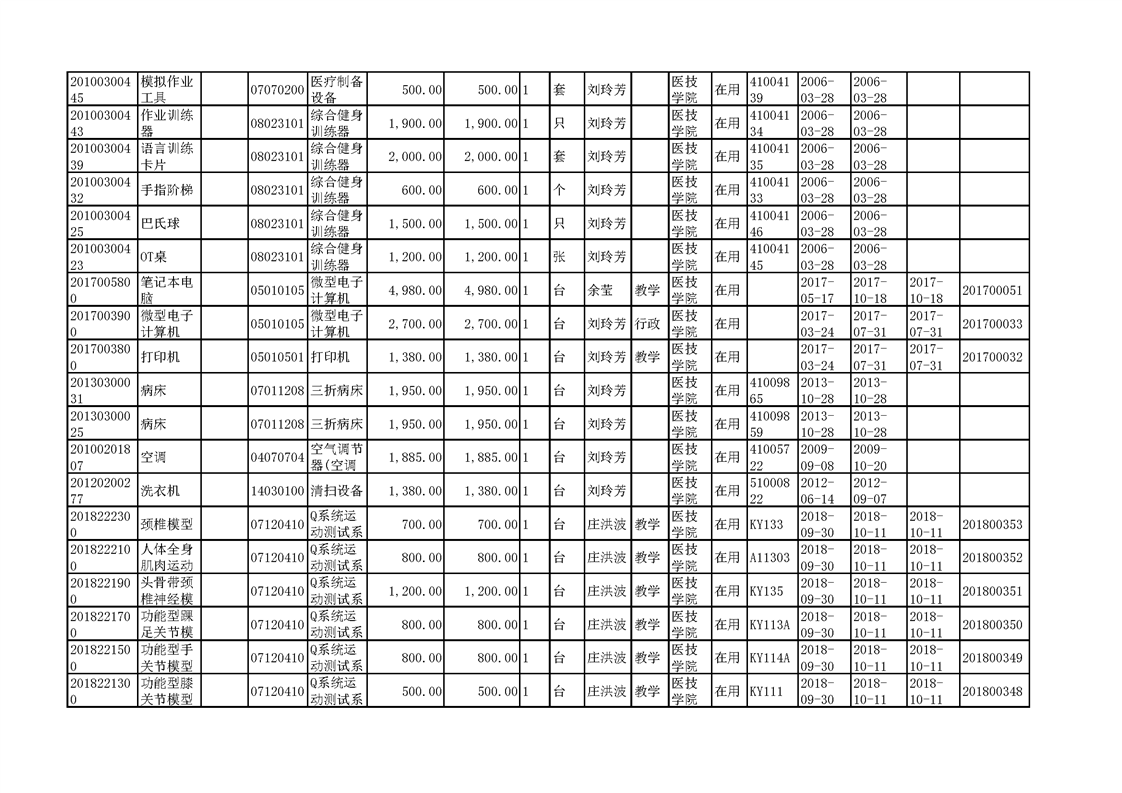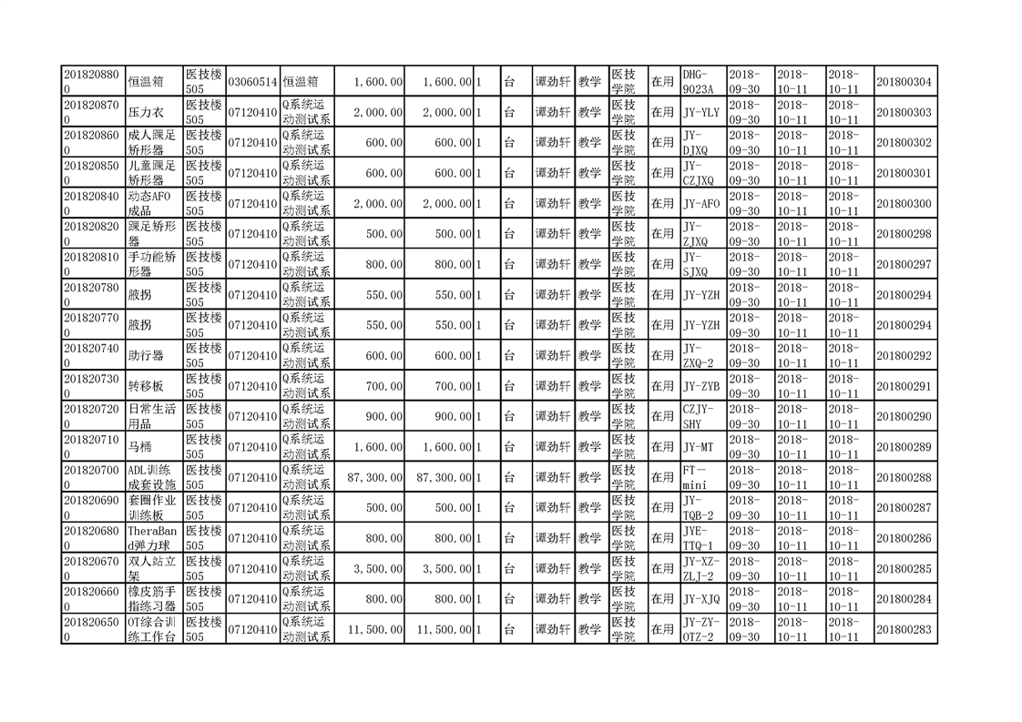 3.1.2.3 康复实训设备 一览表