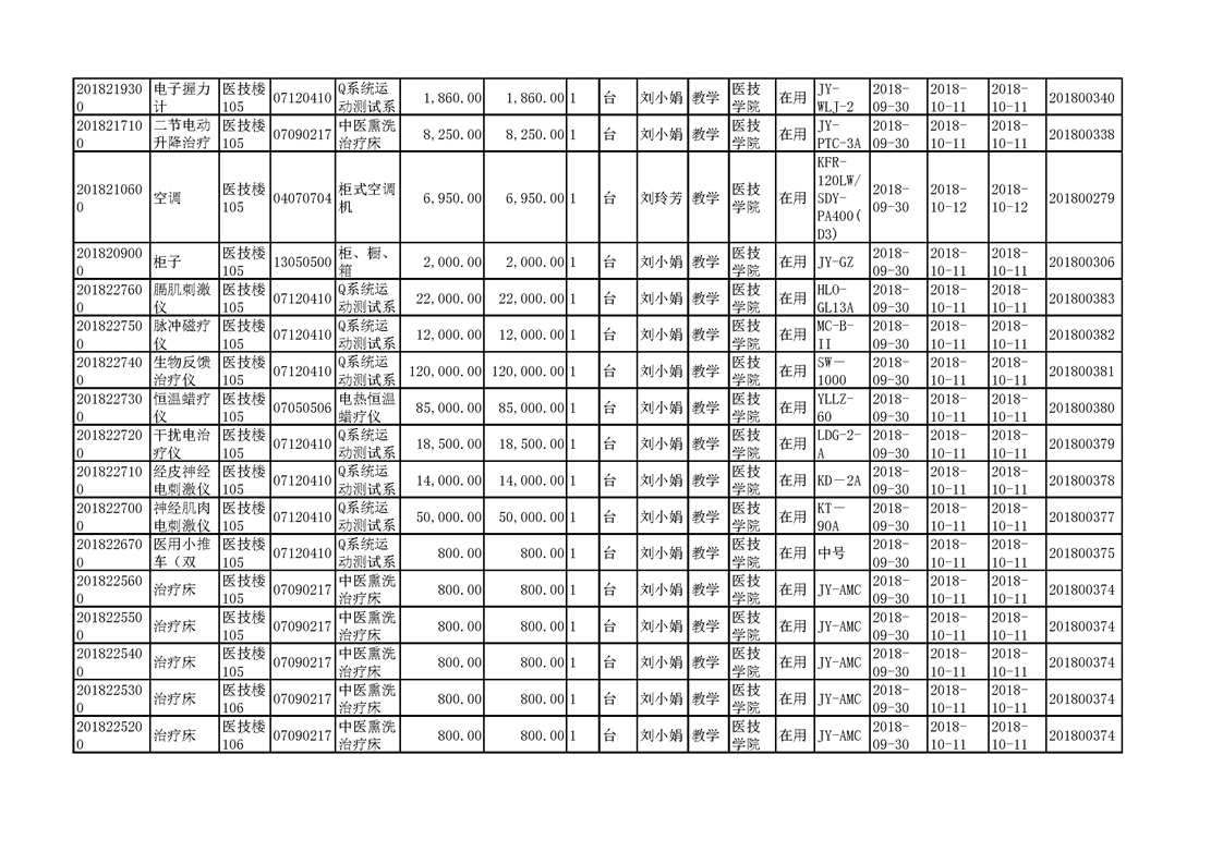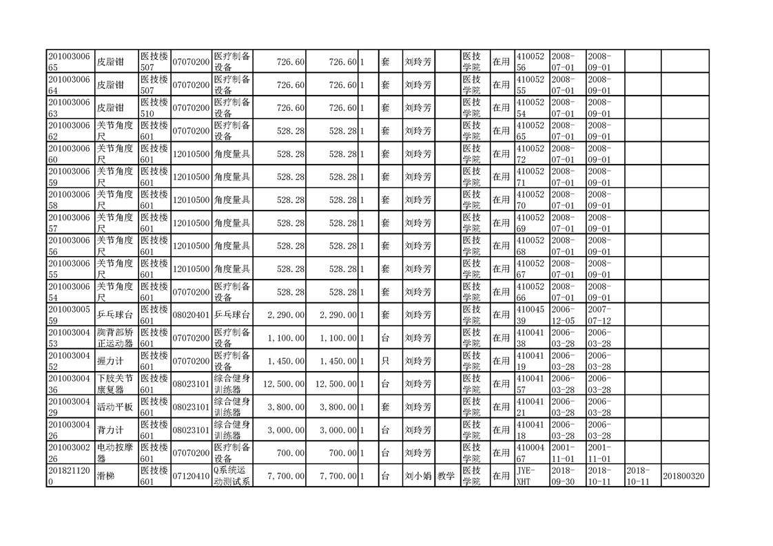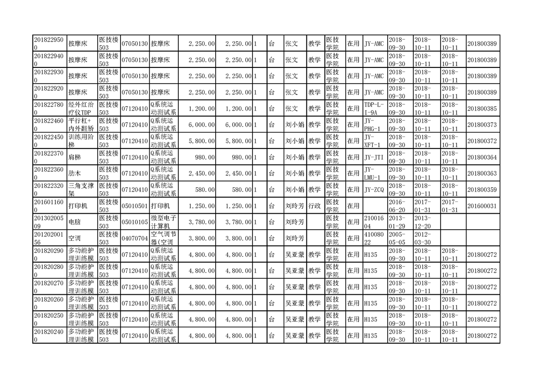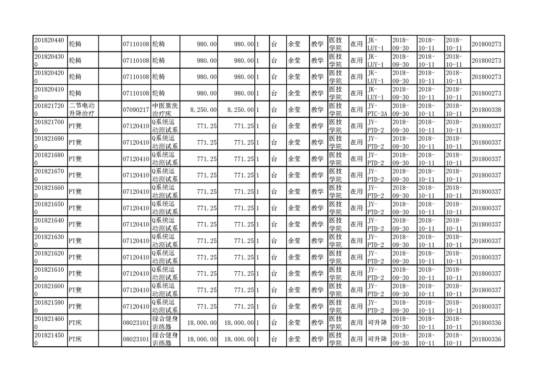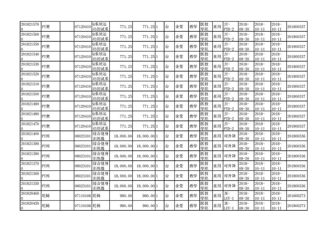 3.1.2.3 康复实训设备 一览表