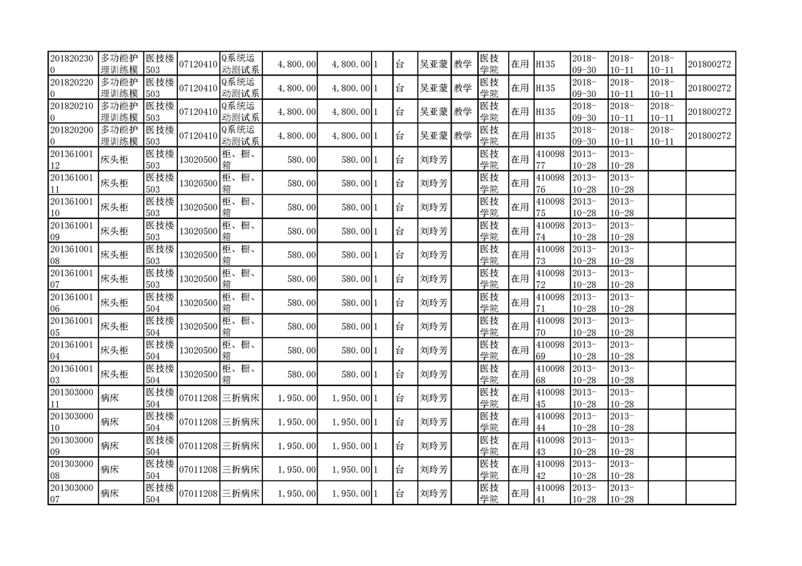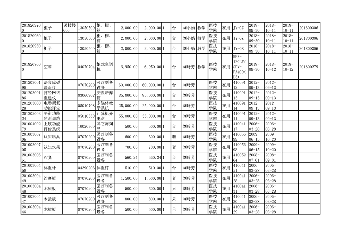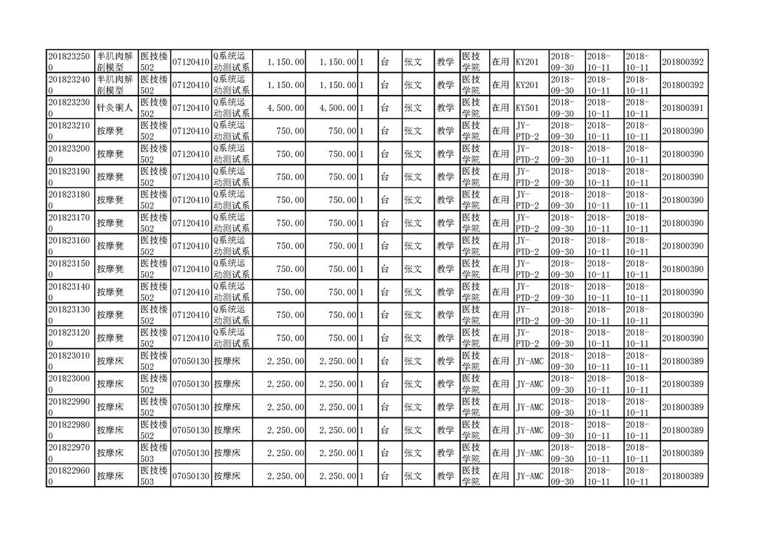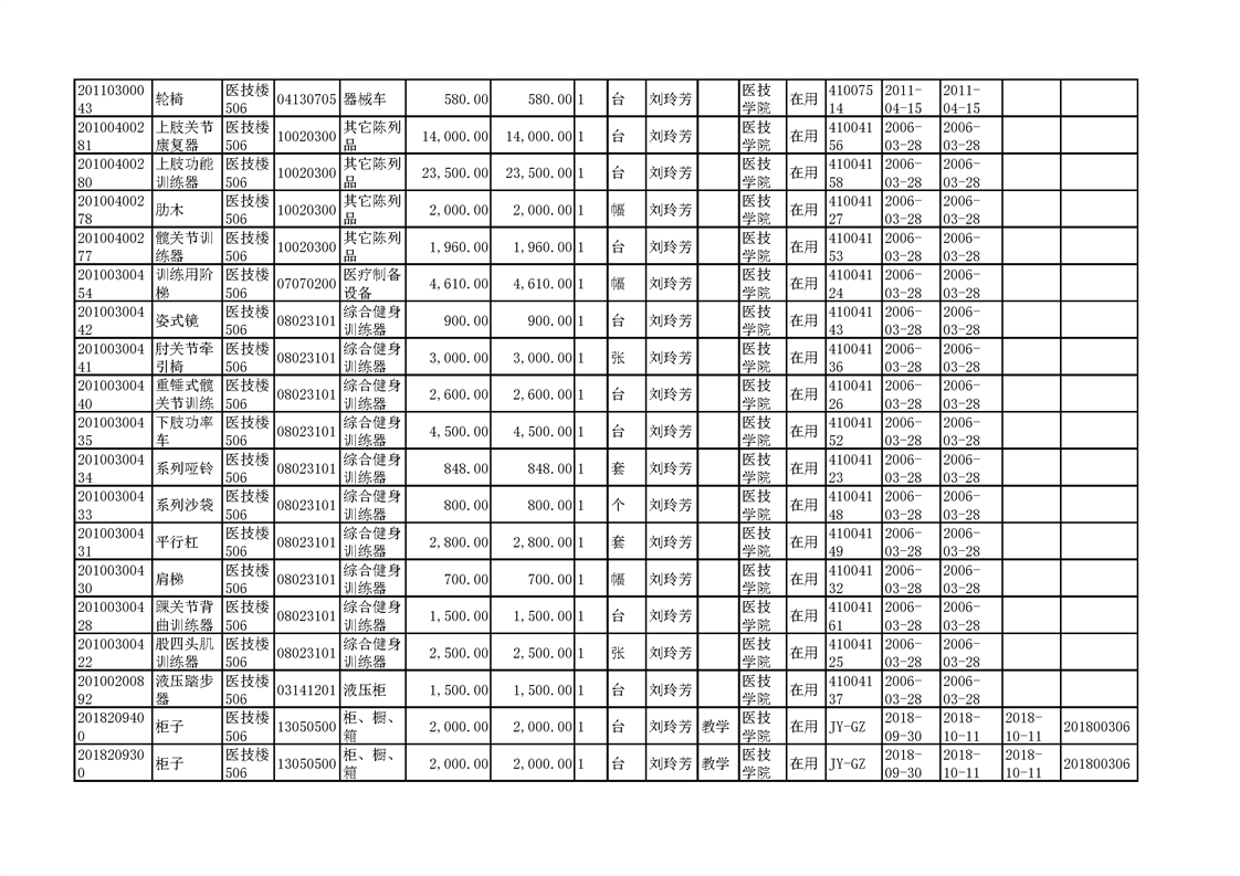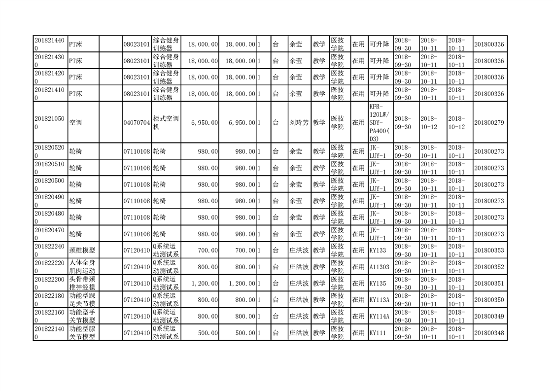 3.1.2.3 康复实训设备 一览表