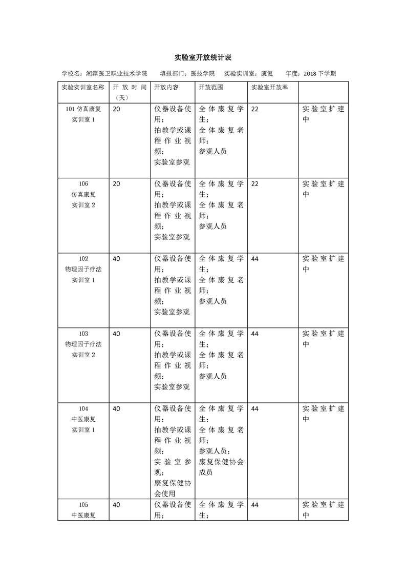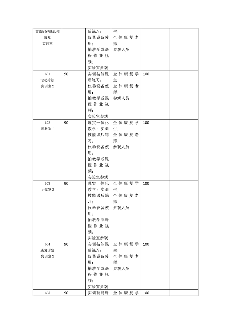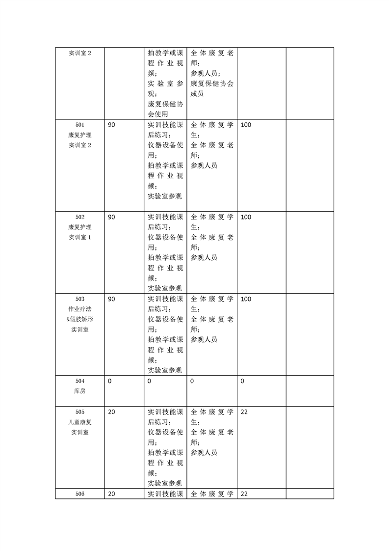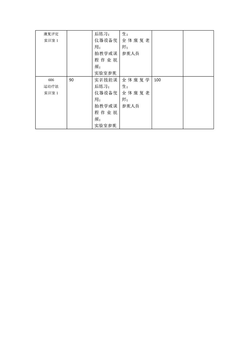 3.1.3.1 康复治疗技术专业增开实验实训项目一览表