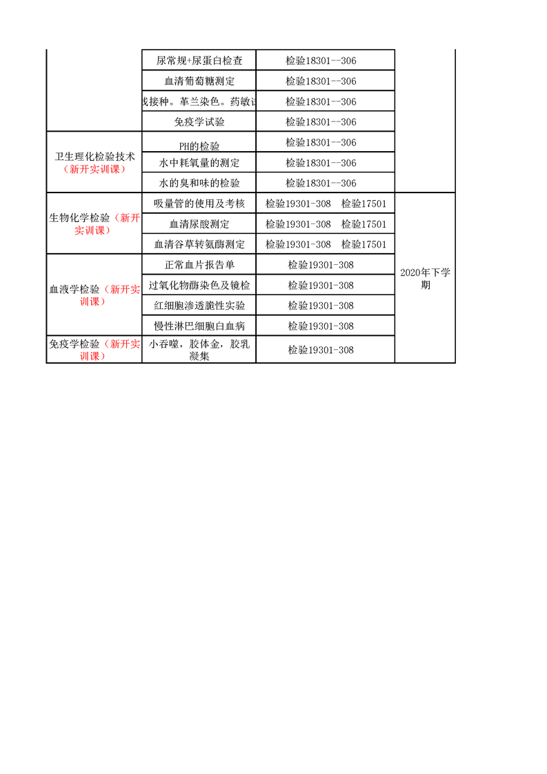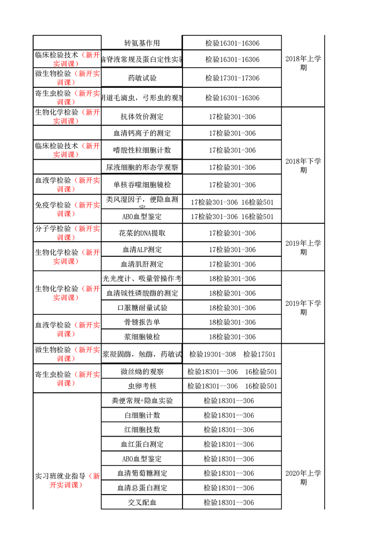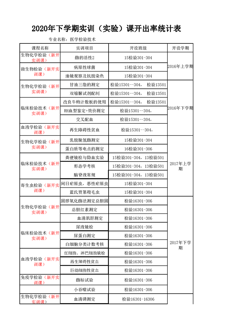 3.1.3.1 医学检验技术增开实验实训项目一览表