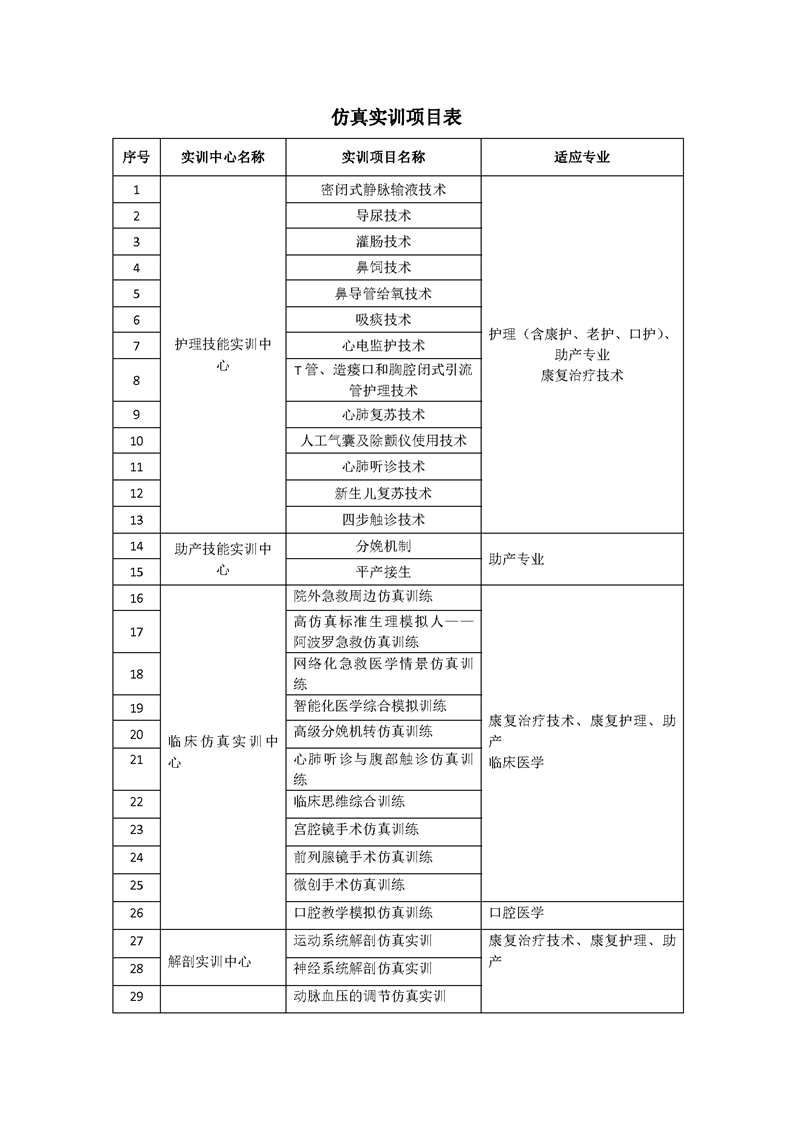 3.1.3.1 康复治疗技术专业增开实验实训项目一览表