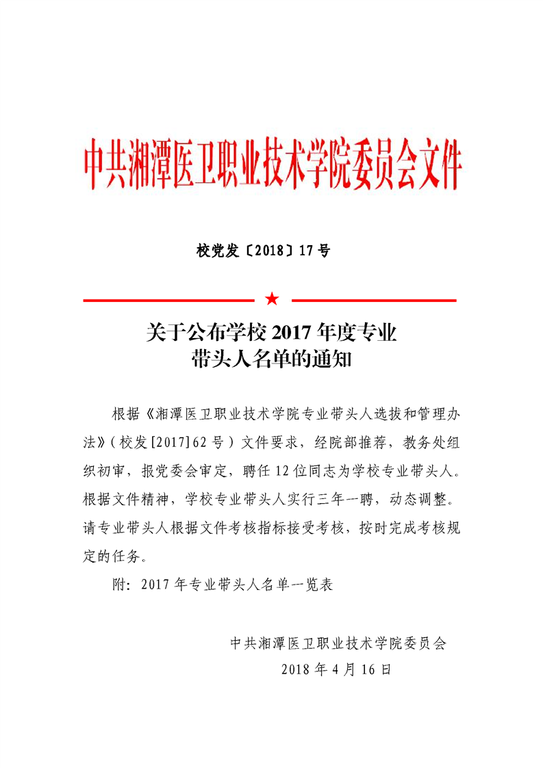 4.2.1.2校党发[2018]17号++关于公布2017年专业带头人名单的通知