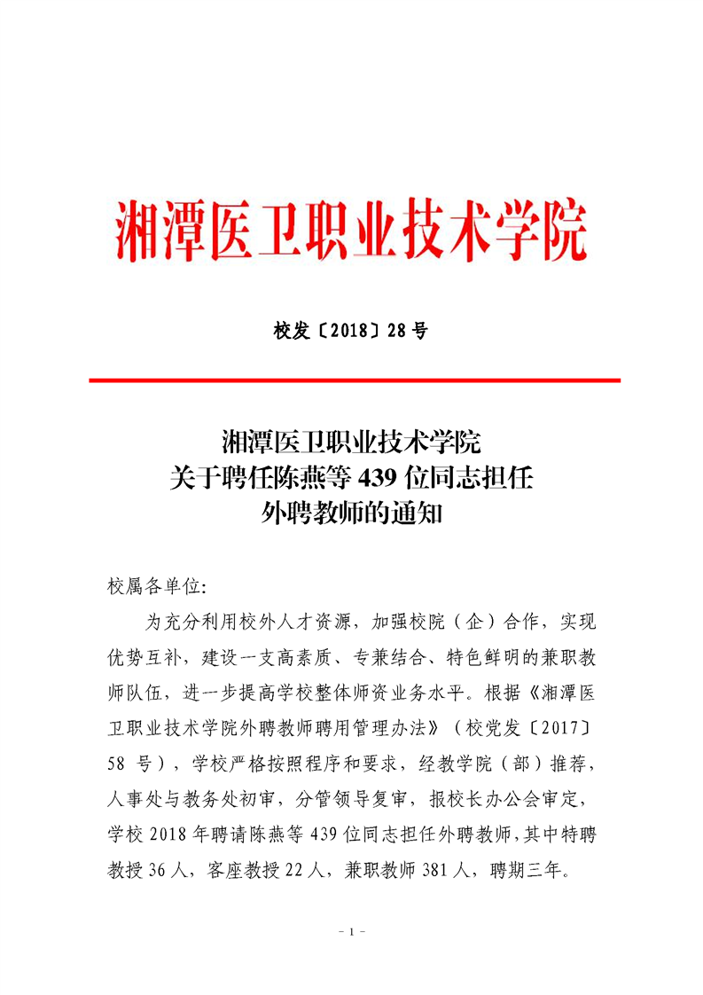 4.4.3.2 校发[2018]28号 关于聘用陈燕等427位同志担任外聘教师的通知