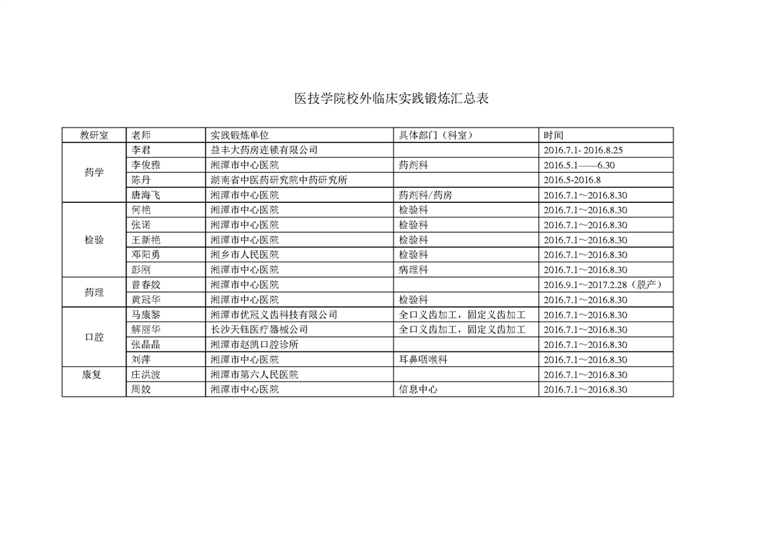 4.4.5.1 2016年医技校外临床实践锻炼汇总表