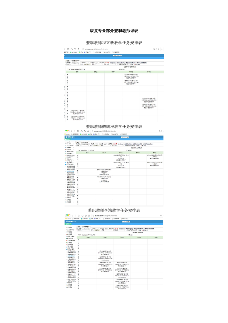 4.4.3.3康复专业部分兼职老师课表