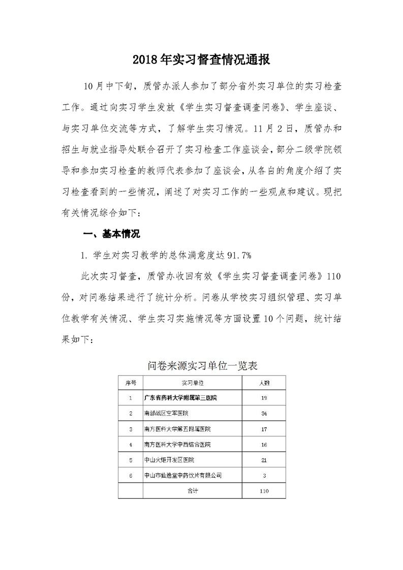 5.3.1.1实习医院实习检查情况通报、会议纪要