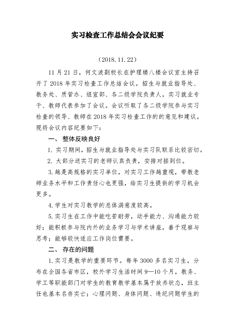 5.3.1.2 2018年实习检查总结会会议纪要