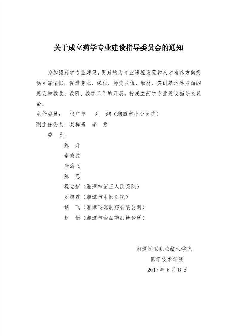 1.1.1.2 成立药学专业建设指导委员会的通知