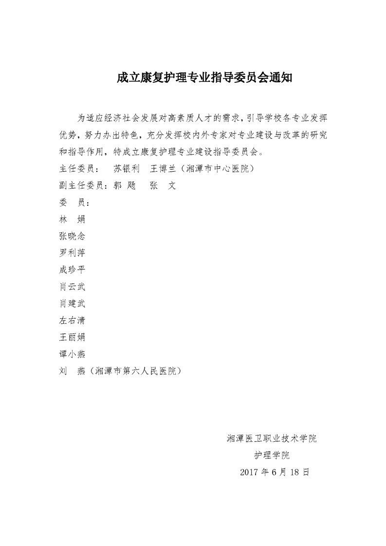 1.1.1.2成立康复护理专业建设指导委员会的通知