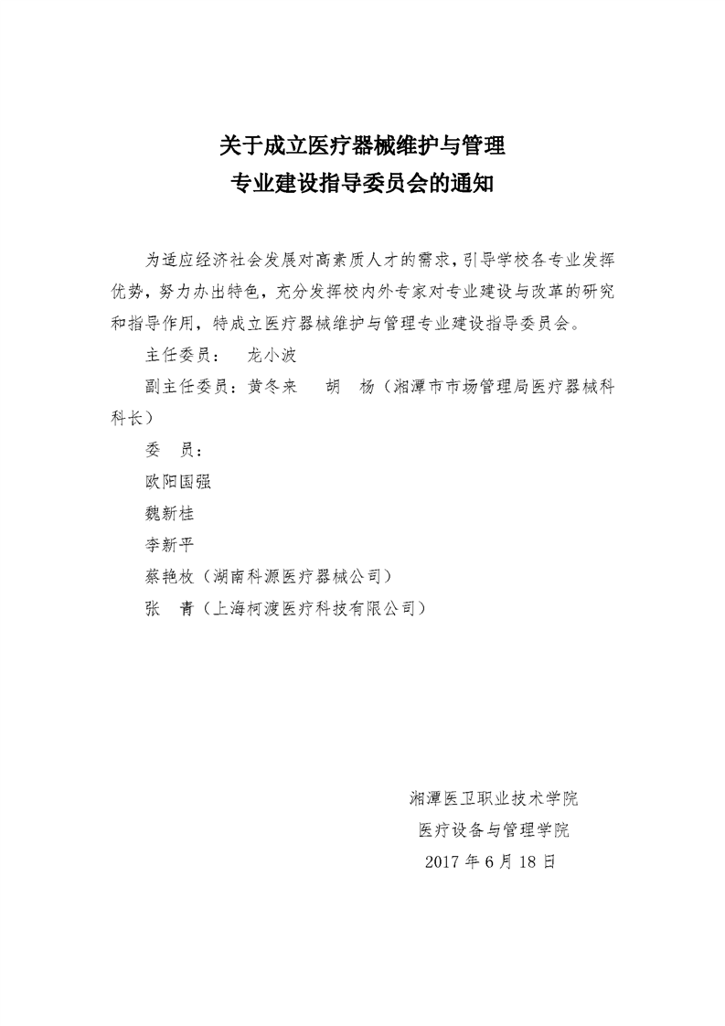 1.1.1.2成立医疗器械维护与管理专业建设指导委员会的通知