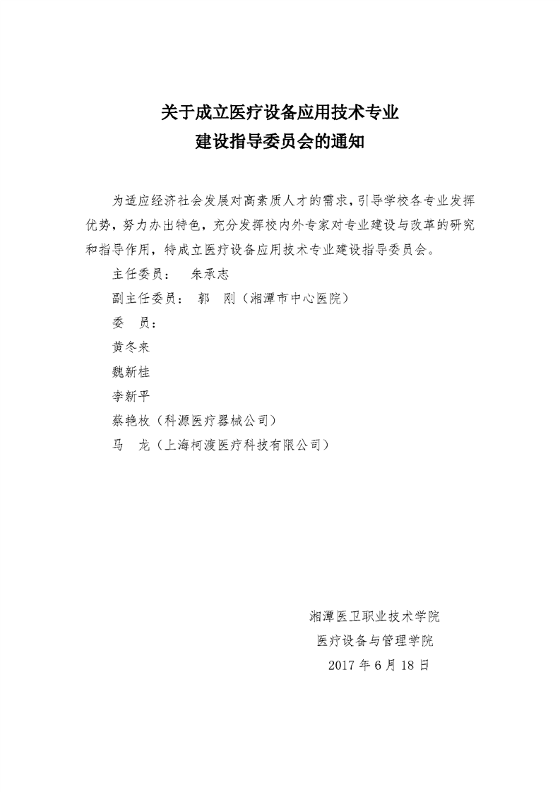 1.1.1.2成立医疗设备应用技术专业建设指导委员会的通知