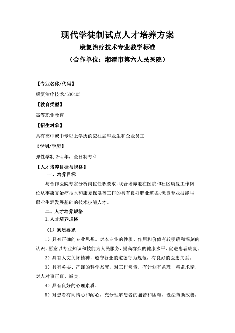 2.1.1.1 康复治疗技术专业现代学徒制人才培养方案