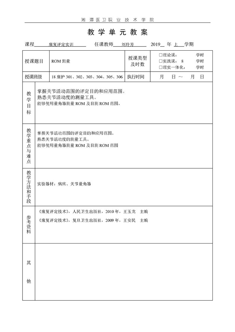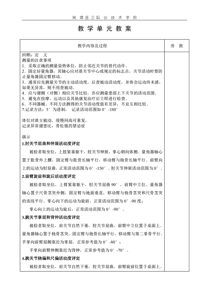 2.4.1.4 康复治疗技术专业实训教案- 康复评定实训教案关节活动度评定-上肢