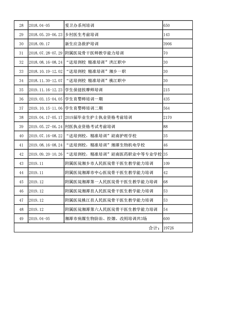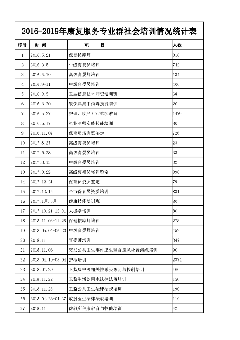 3.2.4.1 2016-2019年康复服务专业群社会培训情况统计表