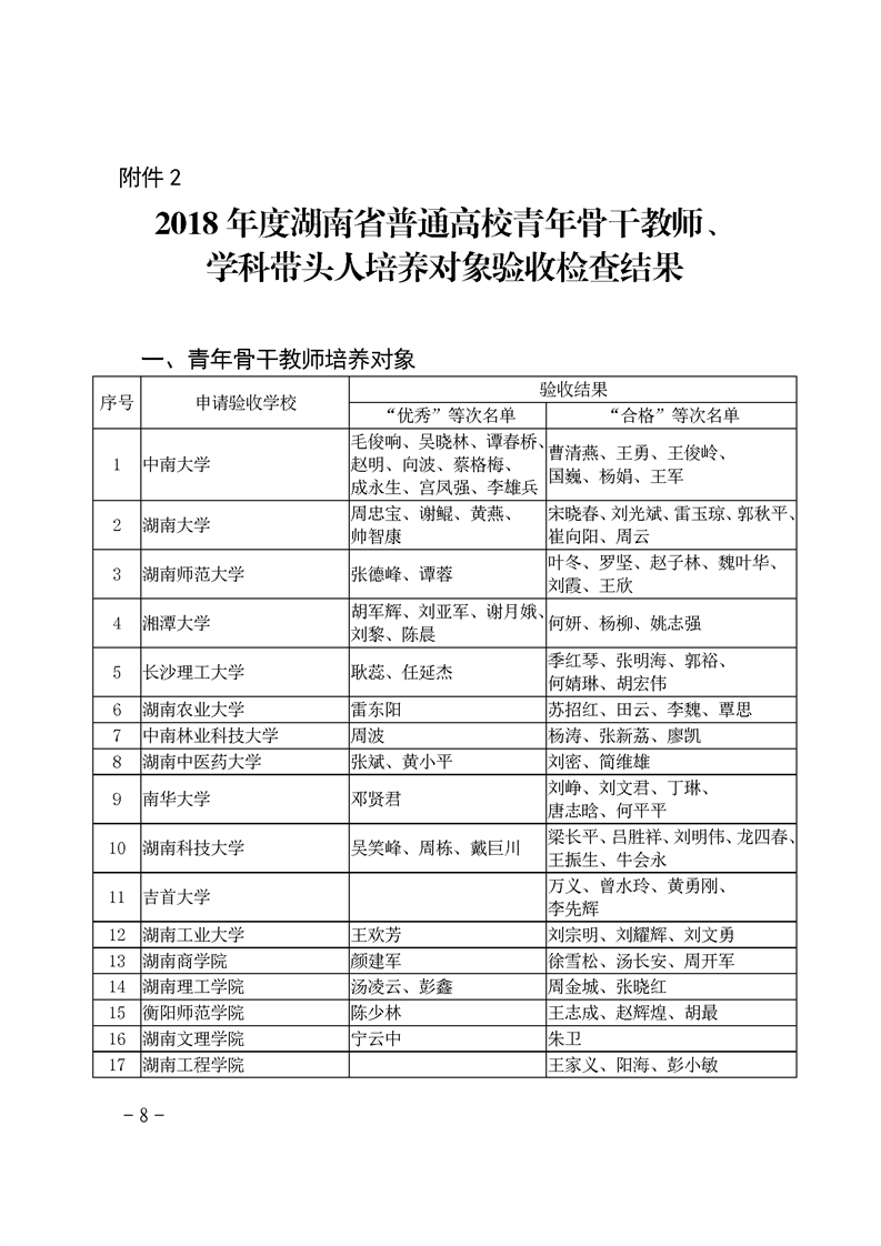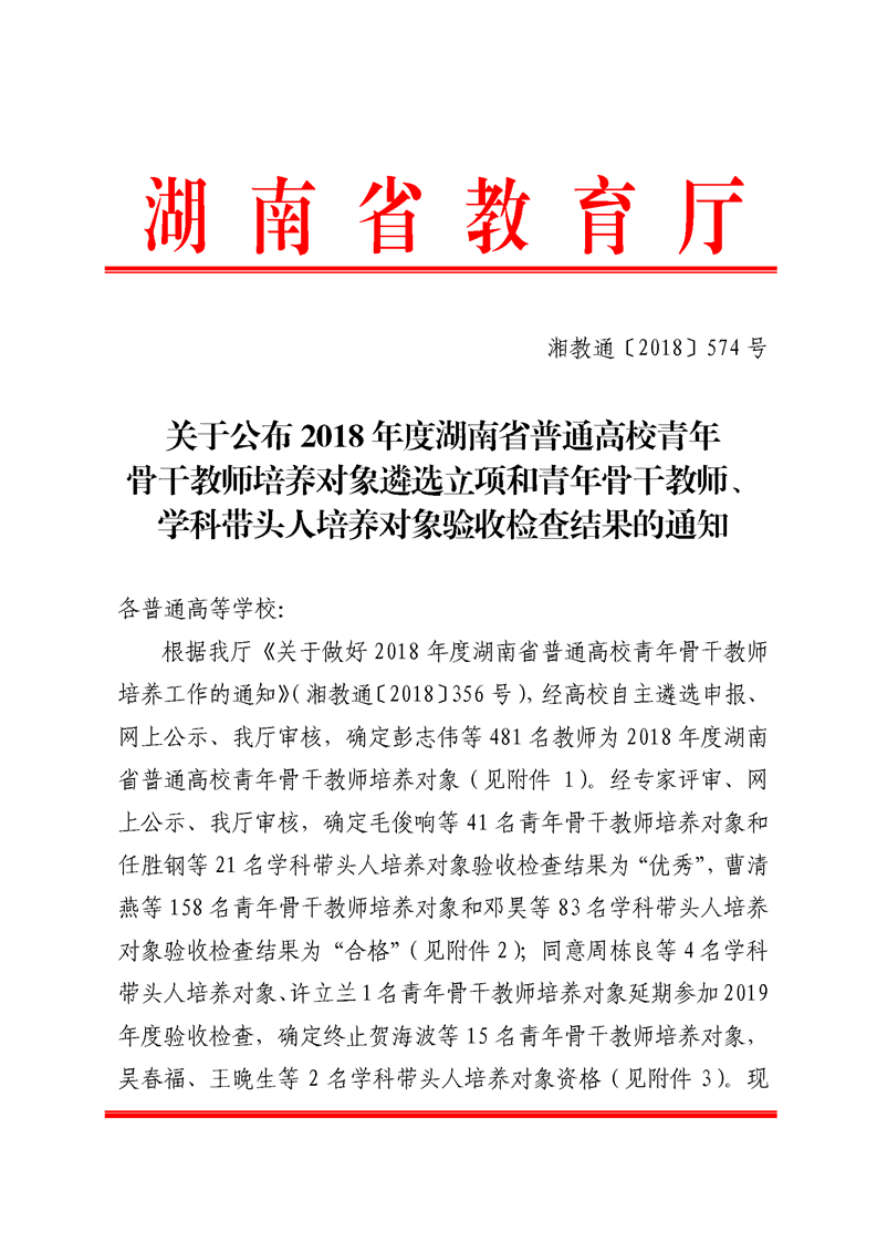 4.3.2.2.1湘教通[2018]574号 关于公布2018年度湖南省普通高校青年骨干教师培养对象遴选立项和青年骨干教师、学科带头人培养对象验收检查结果的通知(王丽娟曾春娇李君