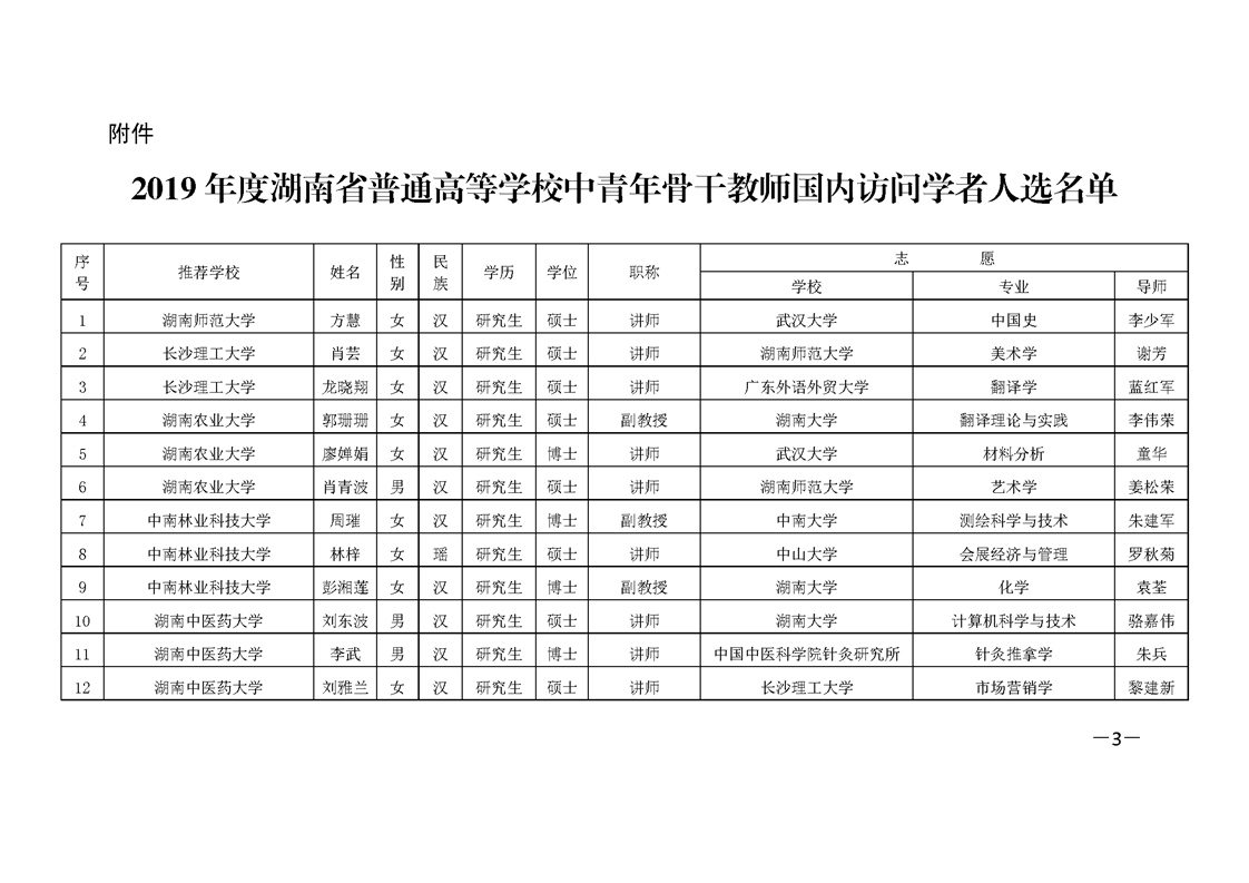 4.3.2.2.关于公布2019年度湖南省普通高等半岛平台中青年骨干教师国内访问学者人选的通知(湘教通