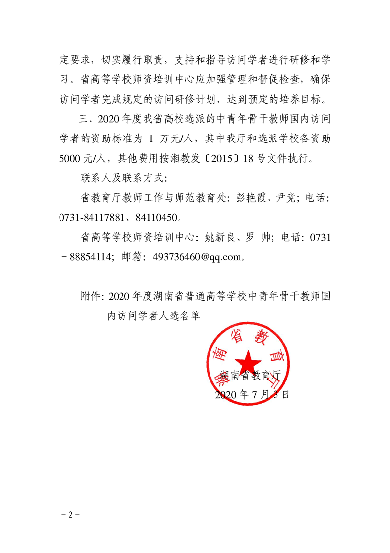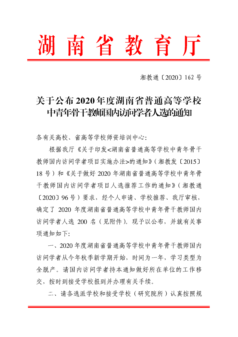 4.3.2.4 湘教通〔2020〕162号 关于公布2020年度湖南省普通高等半岛平台中青年骨干教师国