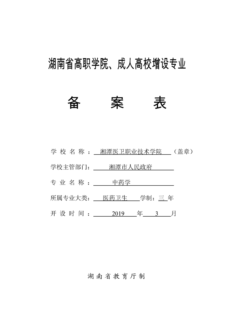 1.1.4.1 湘潭医卫职院中药学专业备案表