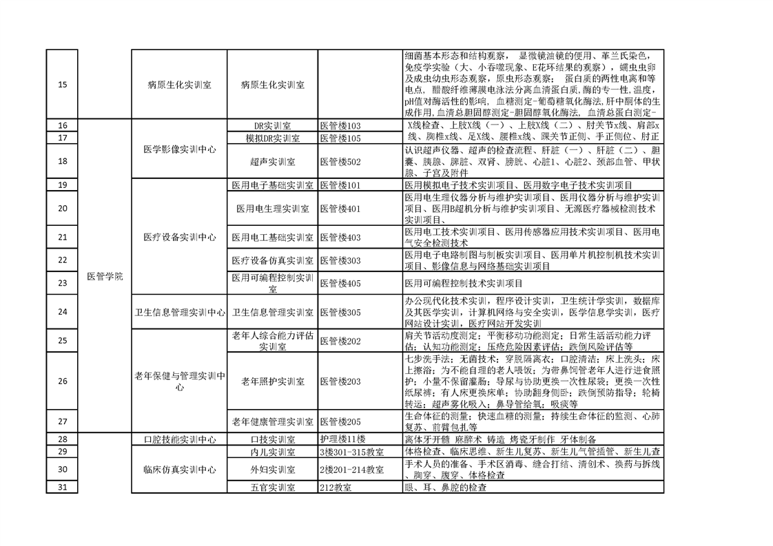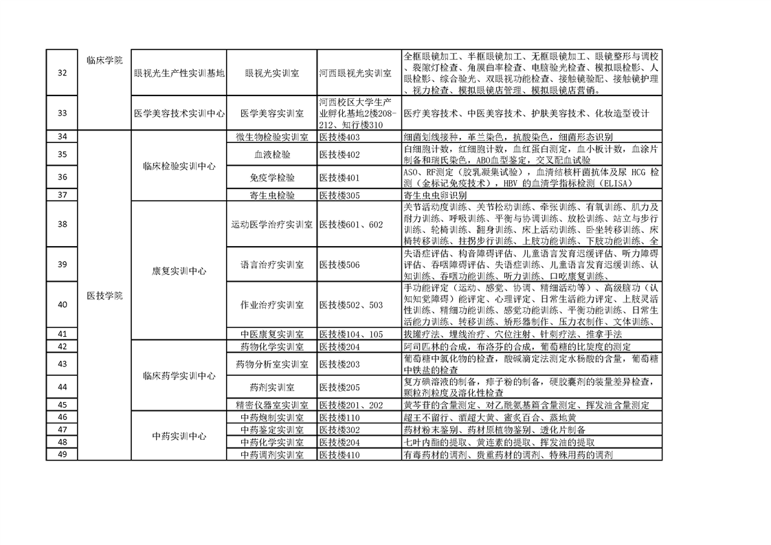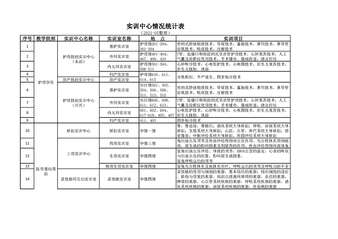 1.2.3.2实训室开设项目情况统计表