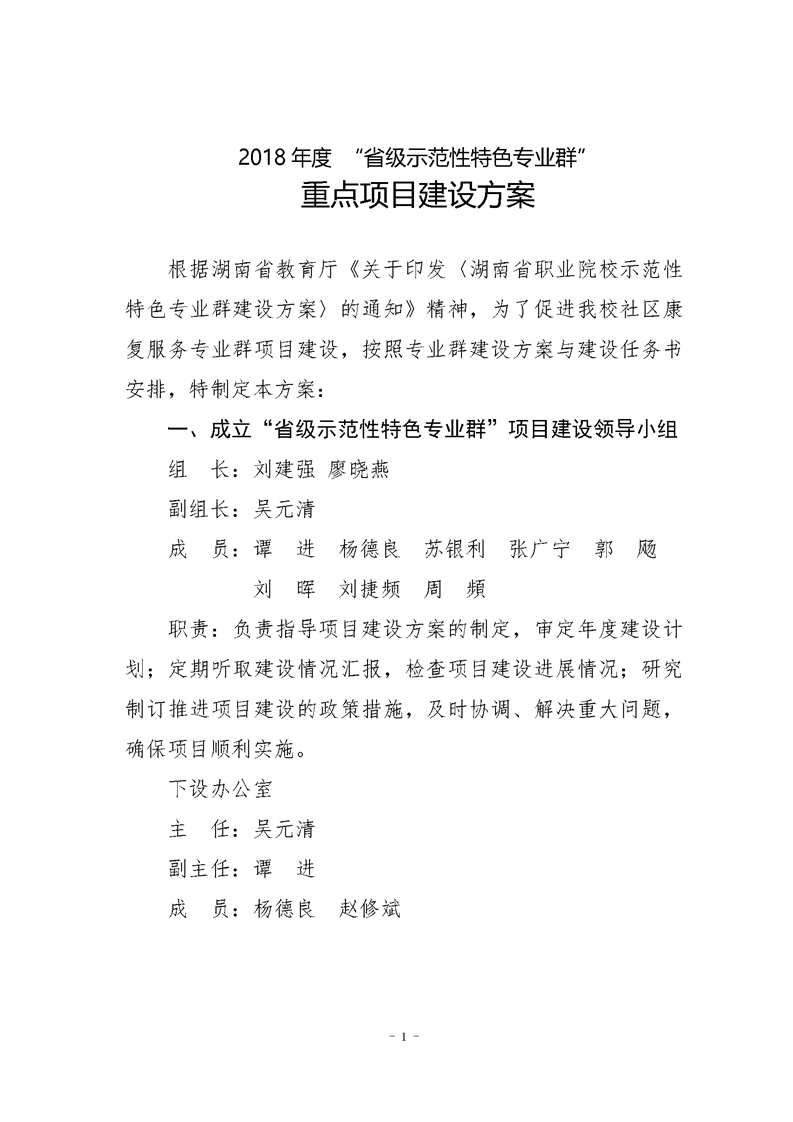 1.3.1.1“省级示范性特色专业群”2018年重点项目建设方案