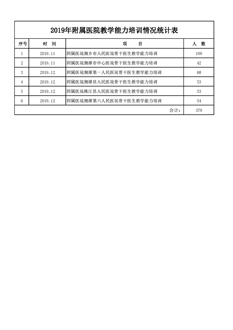 4.4.4.1 2019年附属医院教学能力培训情况统计表