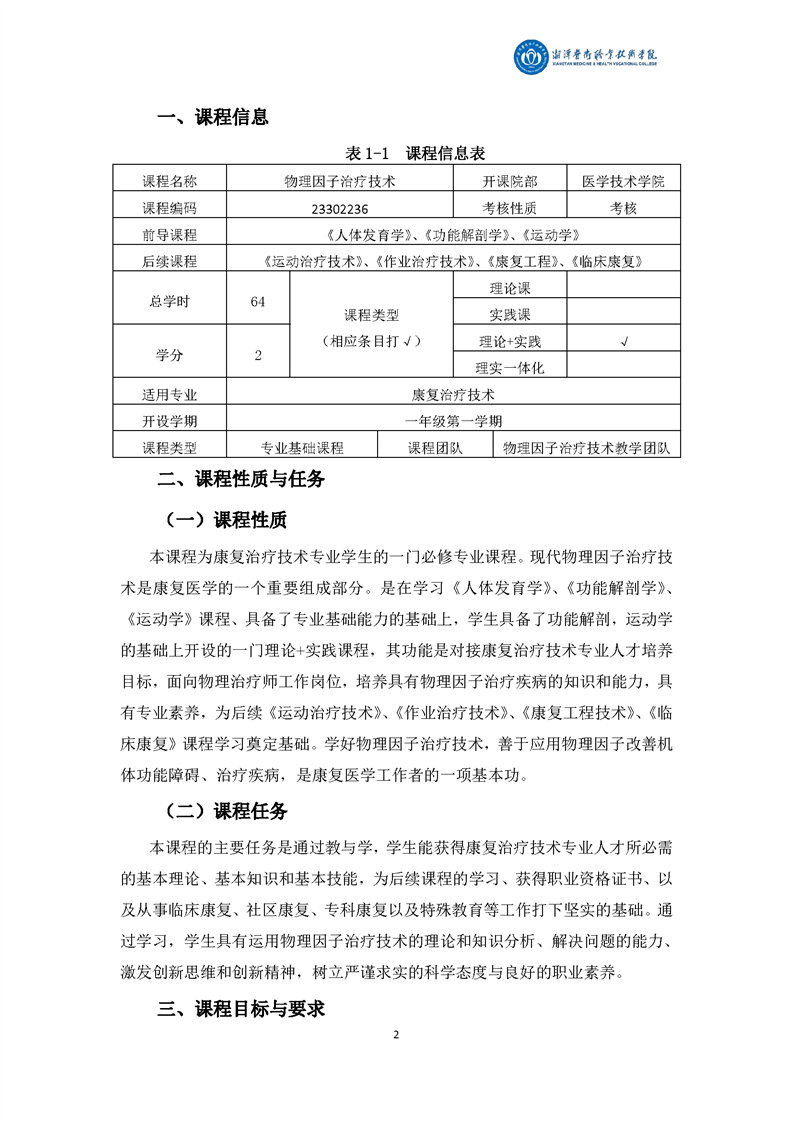 4.2《物理因子治疗技术》课程标准