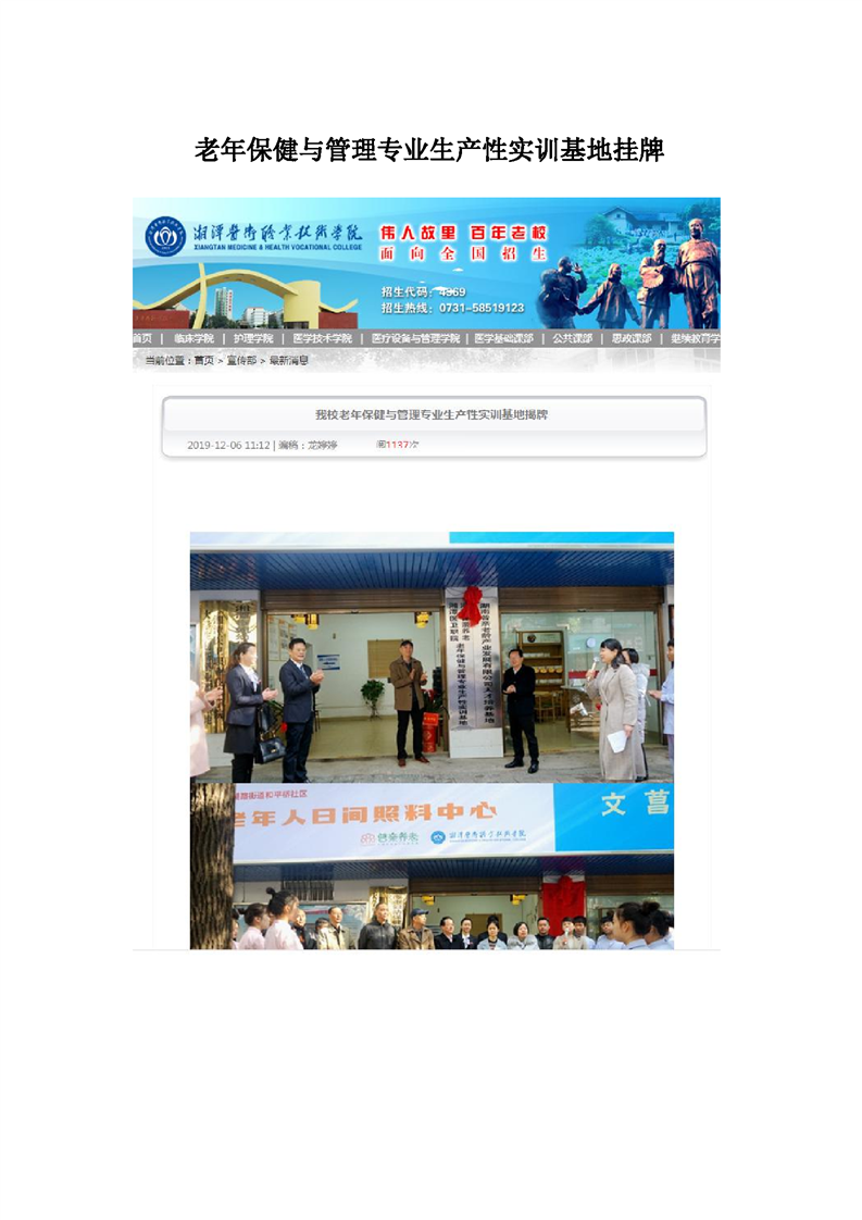 3.3.1.2 老年保健与管理专业生产性实训基地挂牌(日照)