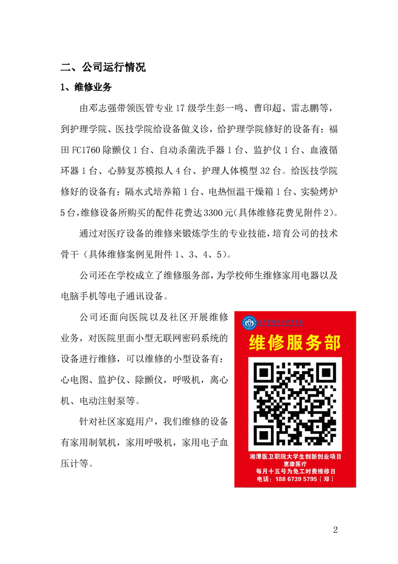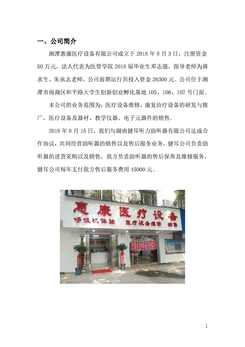 3.3.1.3《大学生创新创业孵化基地入驻项目2018年度经营报告》湘潭惠康