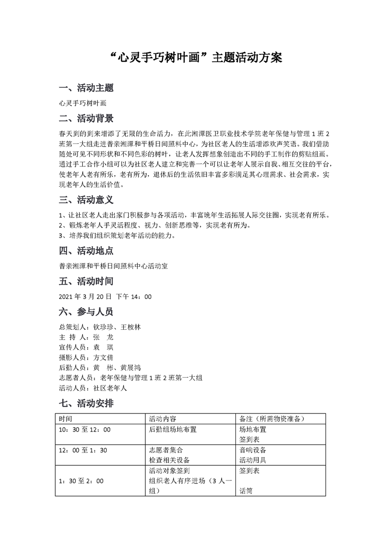 3.3.1.5 树叶画主题活动策划书(实训项目开发案例)