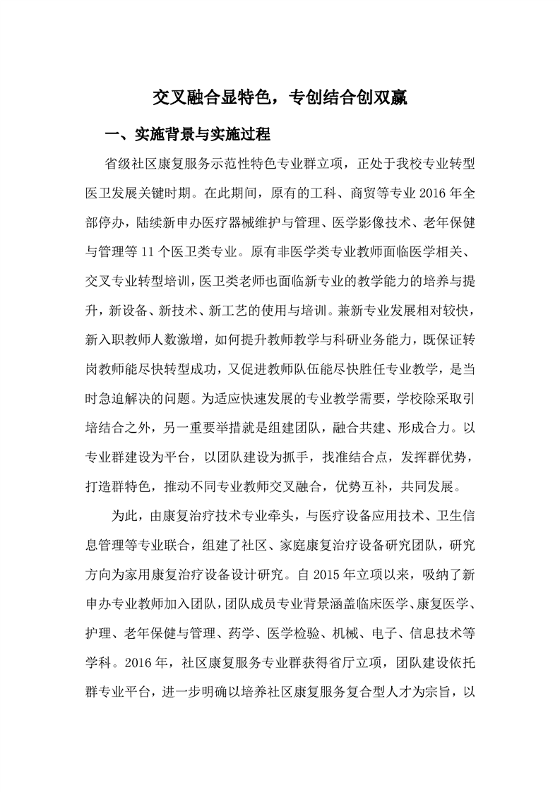 交叉融合显特色,专创结合创双赢案例