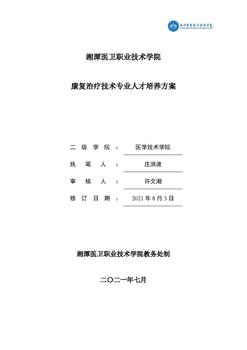 > 教务处 > 半岛(中国)专业人才培养方案 > 9康复治疗技术专业