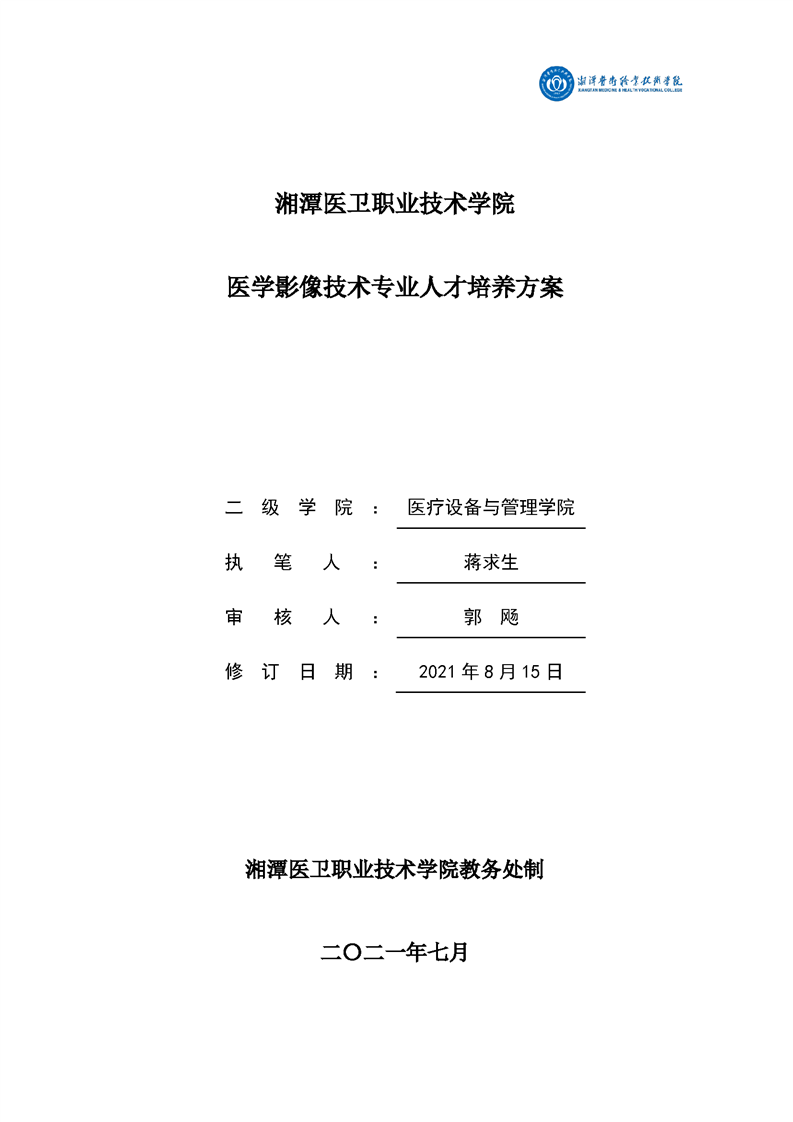 > 教务处 > 半岛(中国)专业人才培养方案 > 15医学影像技术专业