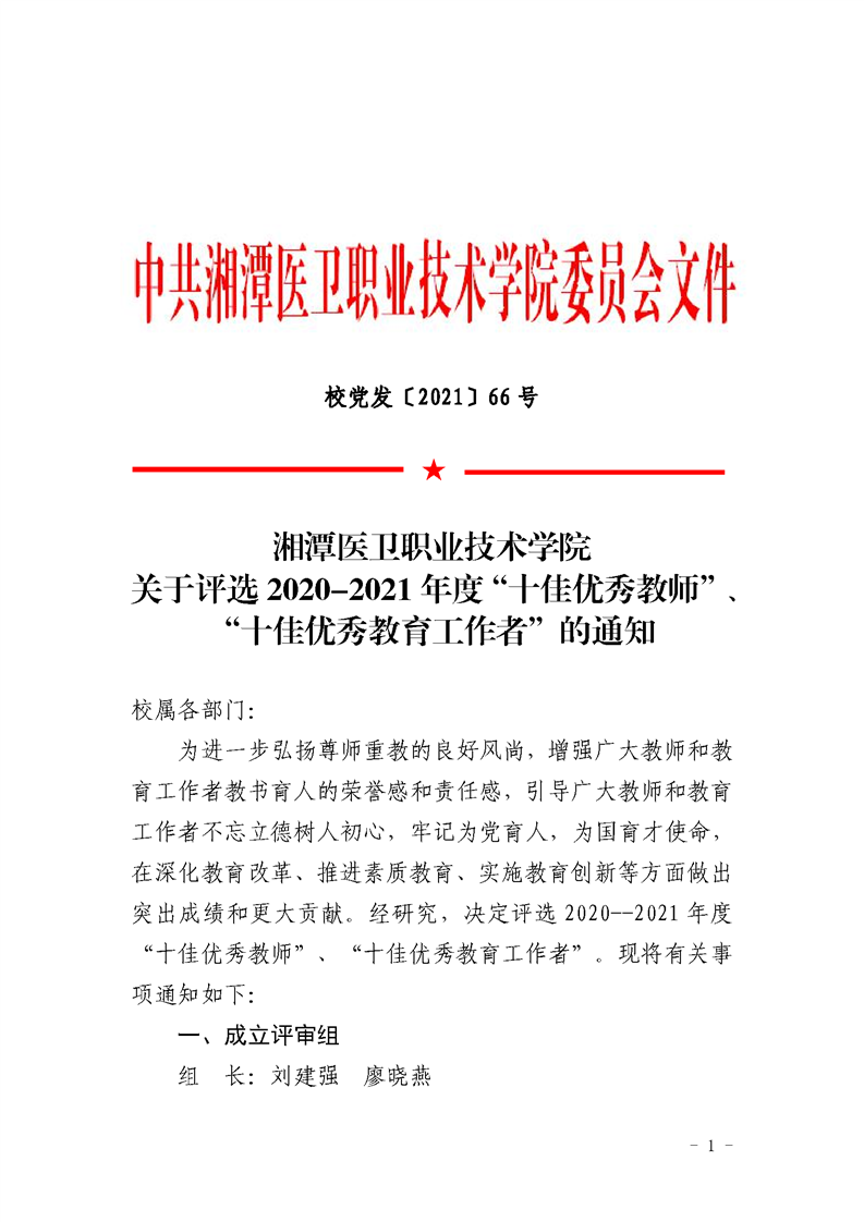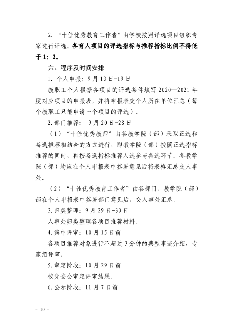 关于评选2020-2021年度“十佳优秀教师”、“十佳优秀教育工作者”的通知
