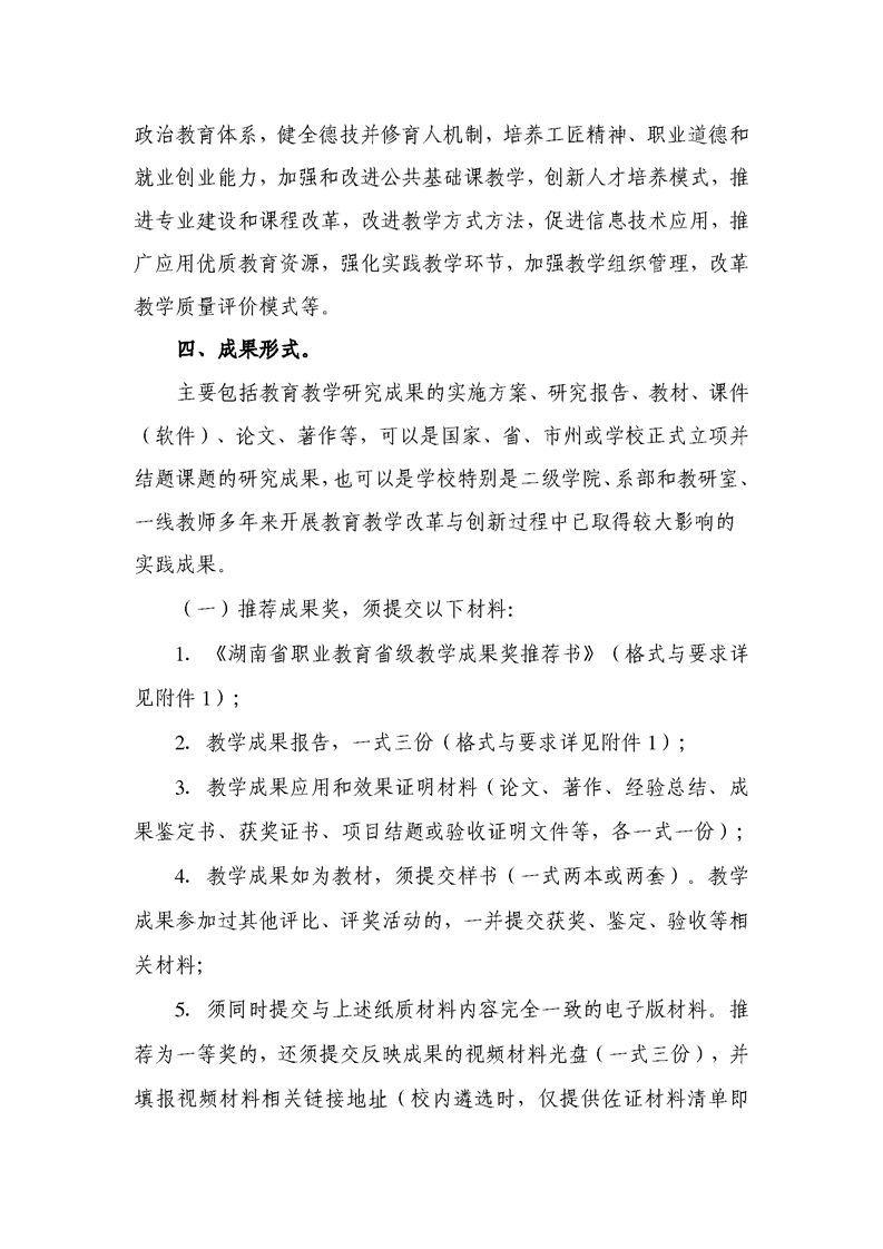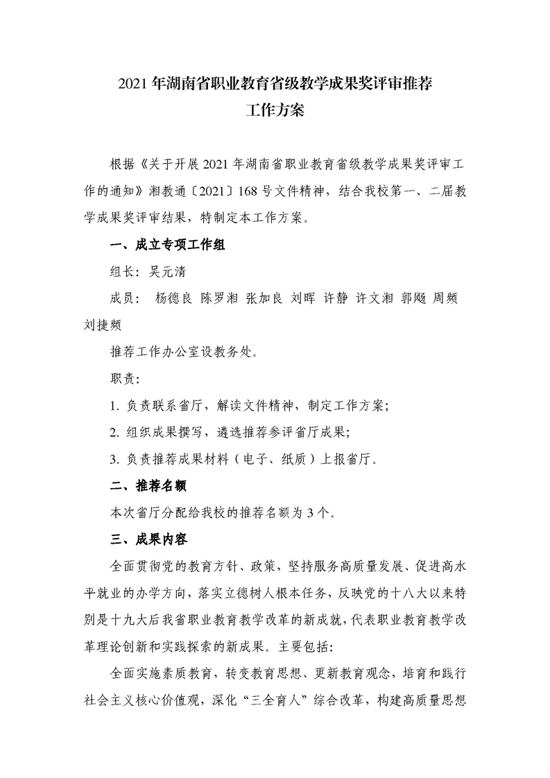 关于2021年湖南省职业教育教学成果奖推荐工作方案