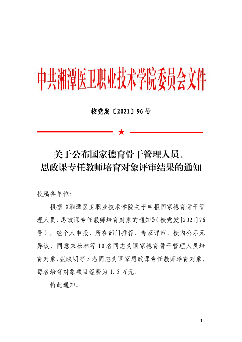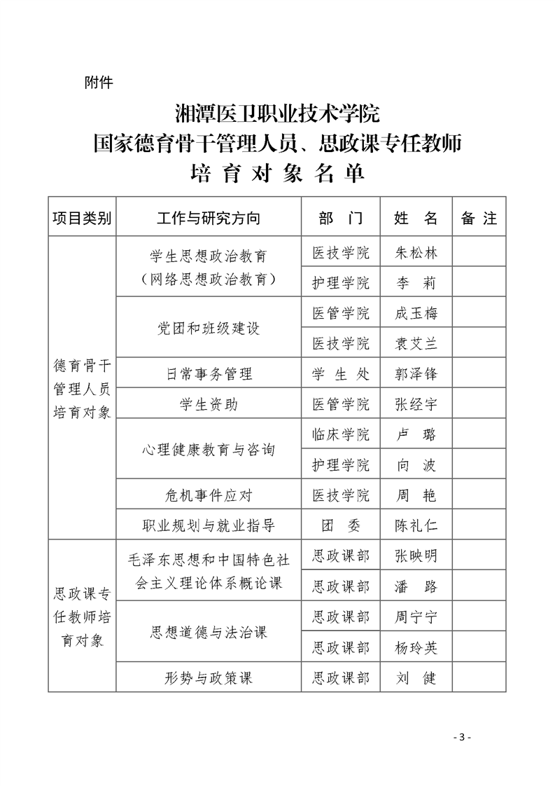 关于公布国家德育骨干管理人员、 思政课专任教师培育对象评审结果的通知