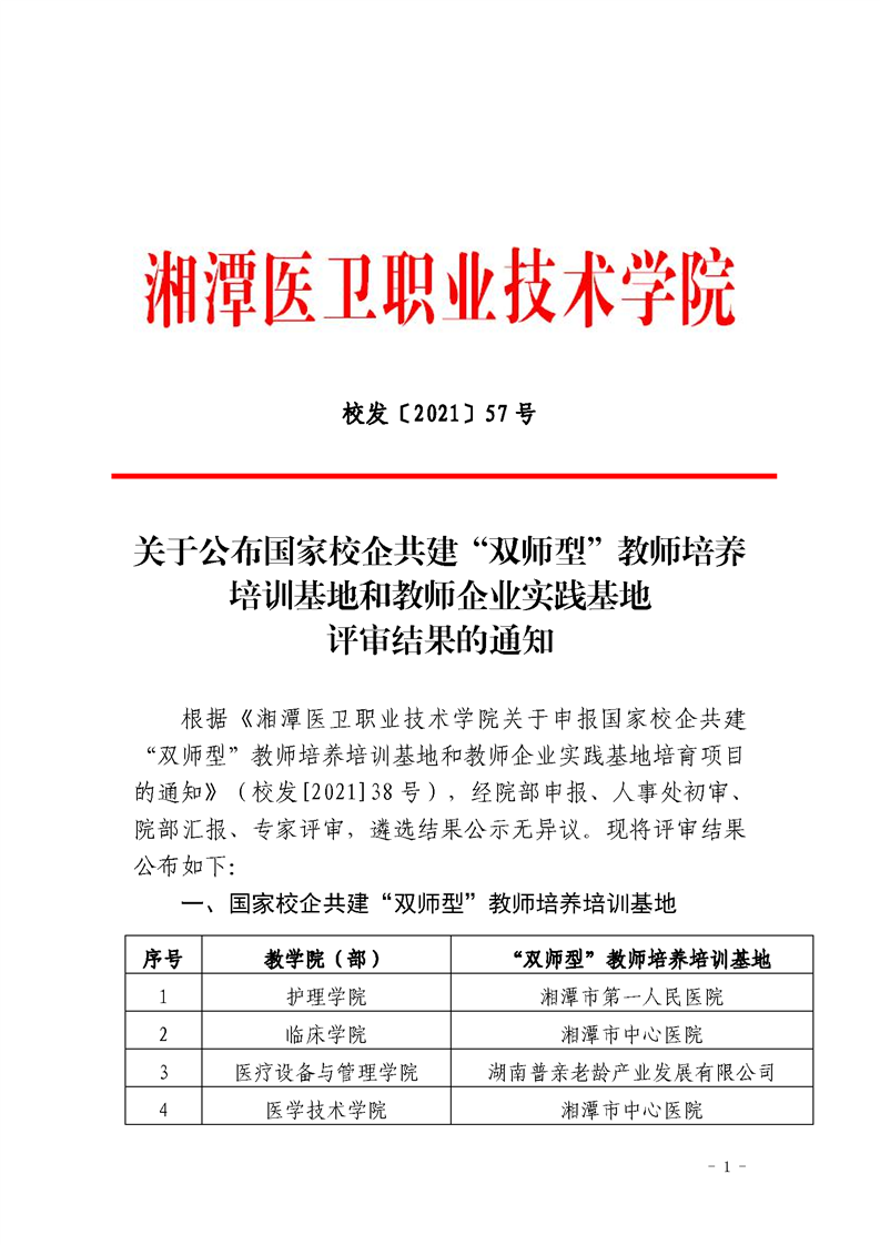 关于公布国家校企共建“双师型”教师培养 培训基地和教师企业实践基地评审结果的通知