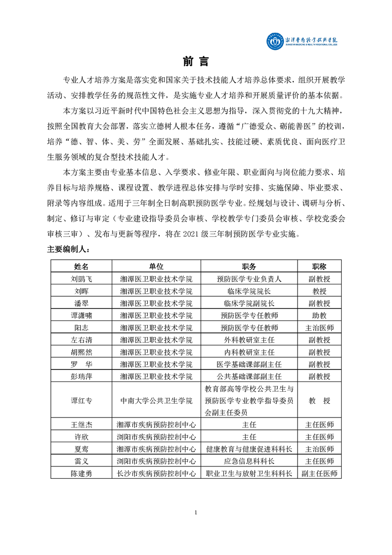 2021级预防医学专业人才培养方案
