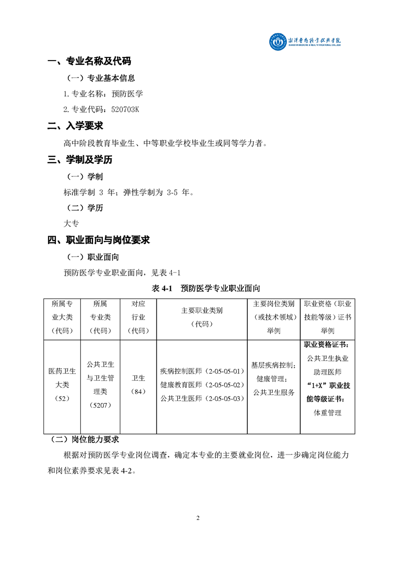 2020级预防医学专业人才培养方案