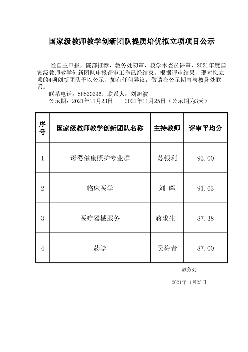 关于公布国家级教师教学创新团队培育项目评审结果的通知
