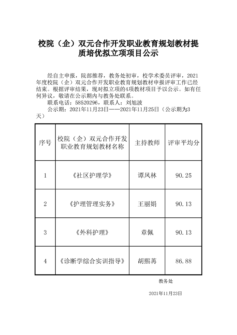 关于公布校院(企)双元合作开发职业教育规划教材培育项目评审结果的通知