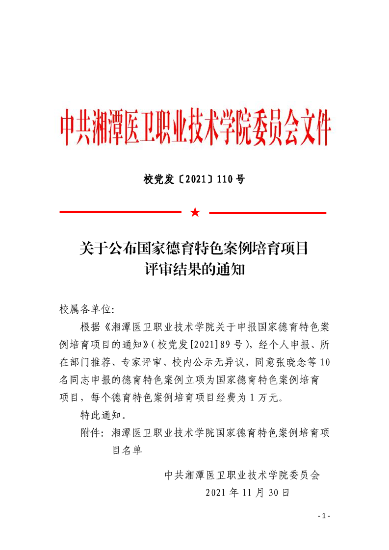 关于公布国家德育特色案例培育项目评审结果的通知