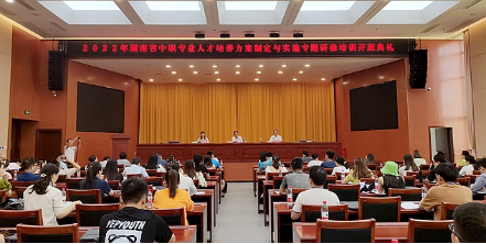 7月11日,2022年湖南省中职专业人才培养方案制定与实施专题研修培训开班典礼在我校举行。我校党委书记刘建强出席开班典礼并致辞,副校长杨卫东主持。
